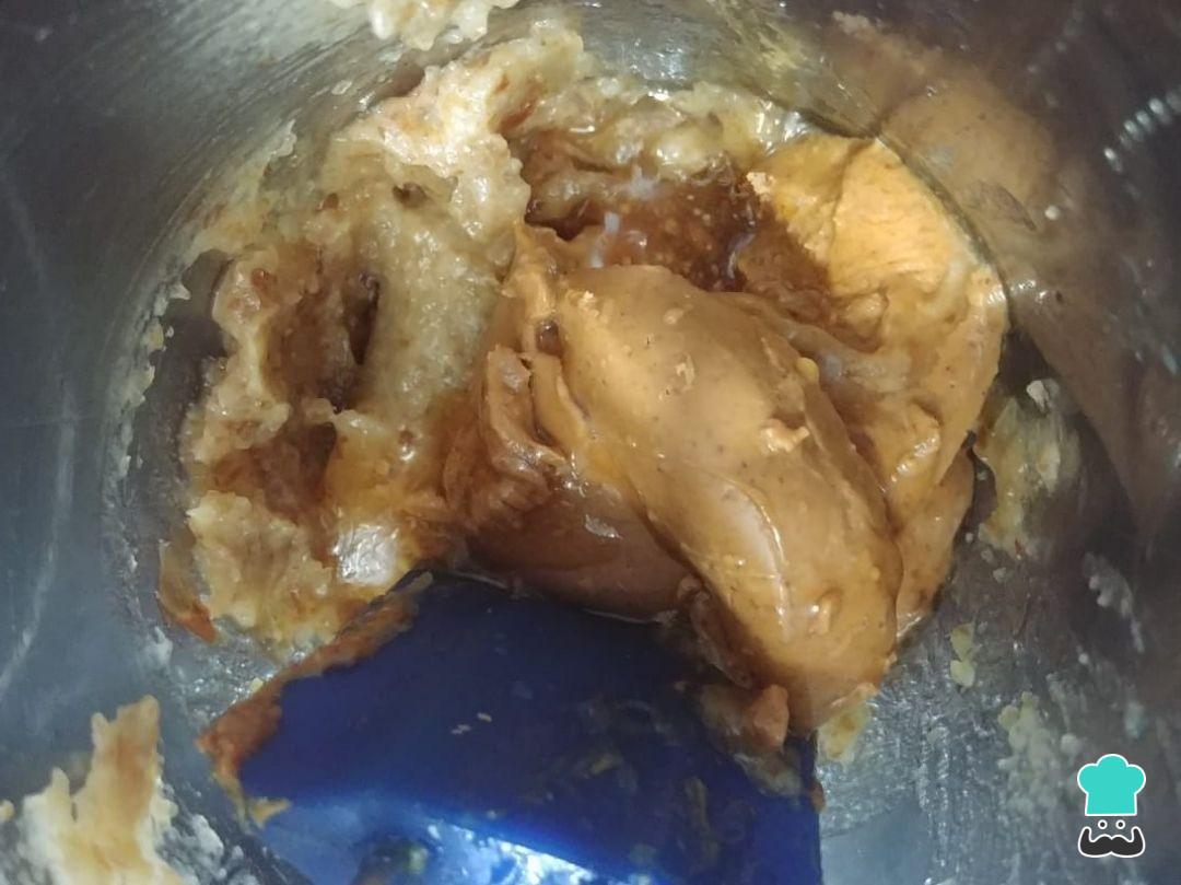 Pon en remojo los dátiles en agua tibia durante 10 minutos, escurre bien y tritúralos en la batidora junto con la crema de cacahuetes hasta que quede una pasta homogénea.