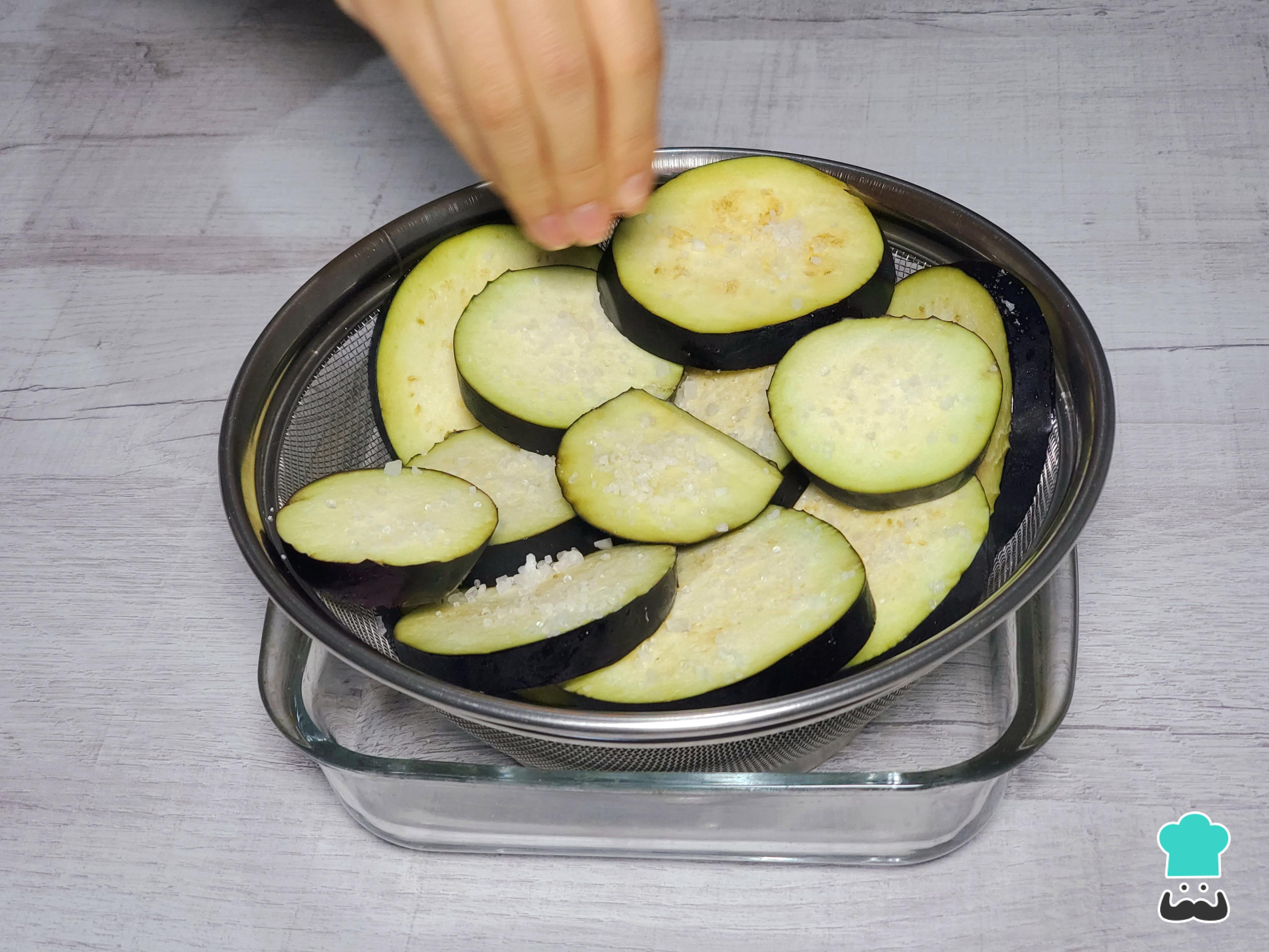 Colócalas en un colador grande, espolvorea sal por encima y déjalas reposar sobre una bandeja para que escurran el líquido marrón. Este proceso suele tomar unos 30 minutos. Una vez transcurrido el tiempo, enjuágalas bien y resérvalas.