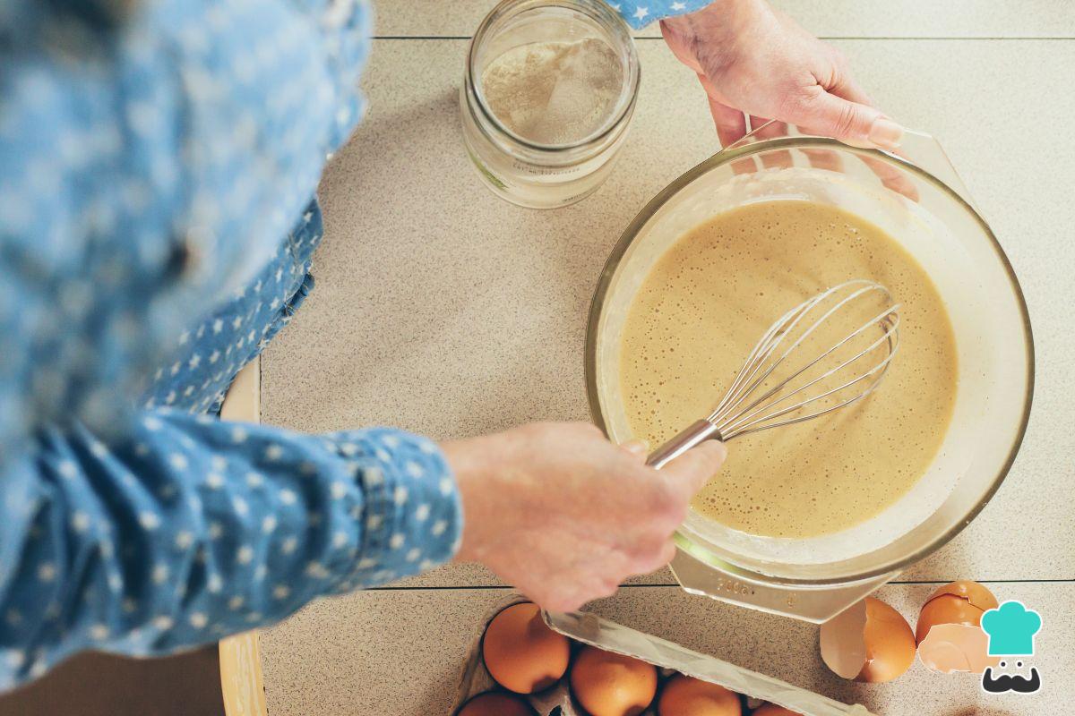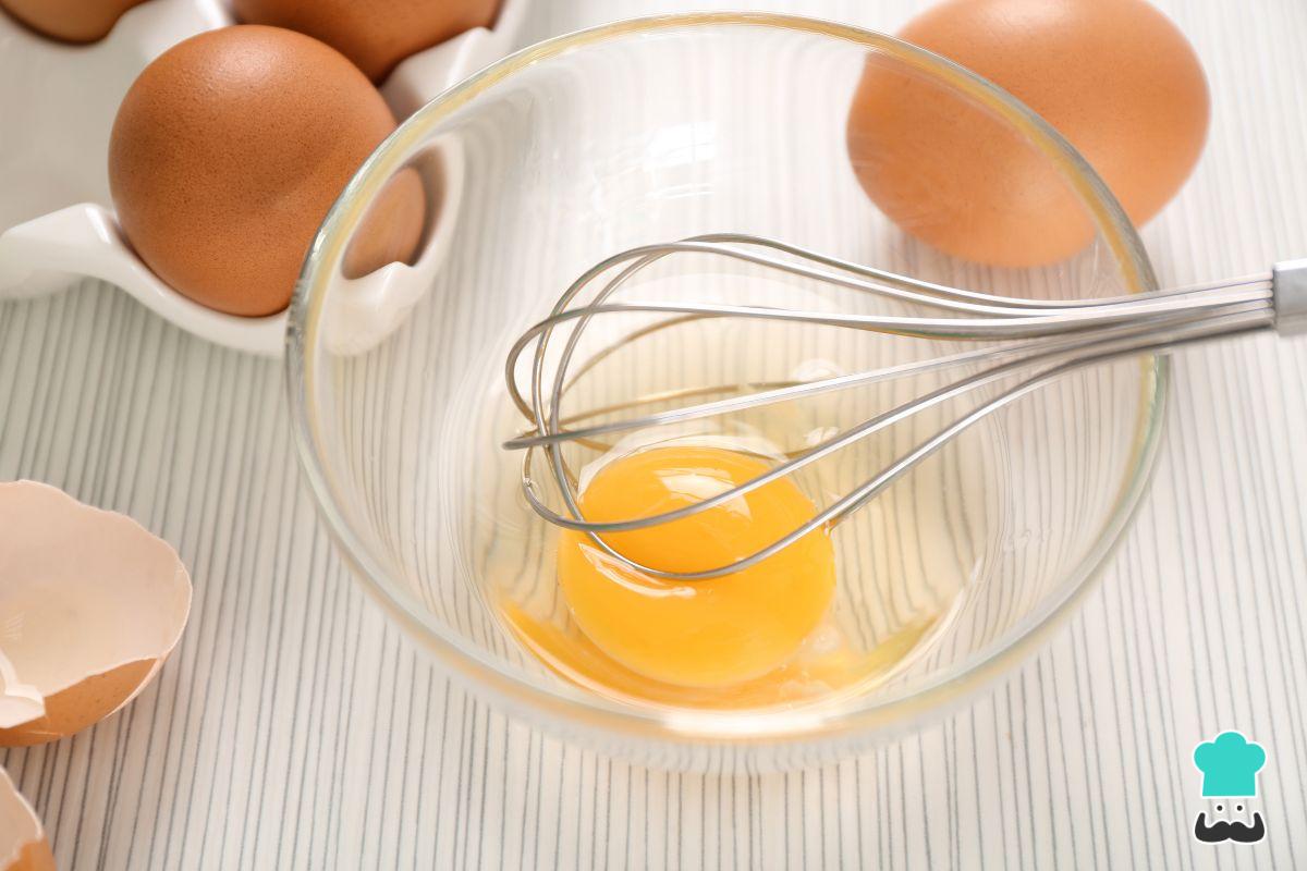 Bate los huevos en un bol con ayuda de una varillas manuales o eléctricas.