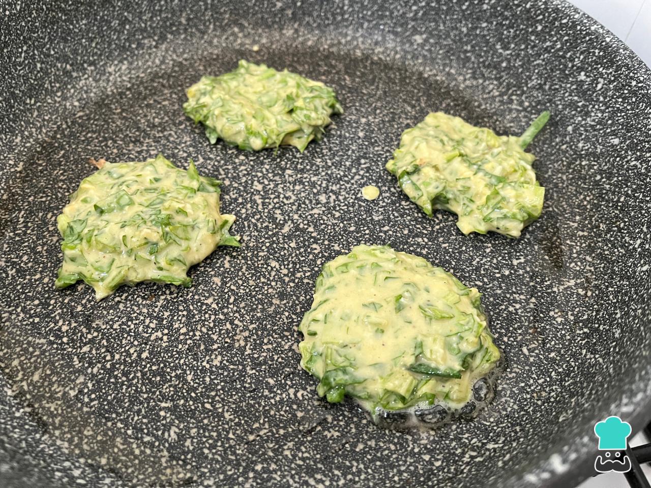 Pasado el tiempo, proporciona la vuelta y cocina por el otro lado, deberá dorarse también. ¡Ya casi tienes listos tus bocadillos de acelga!