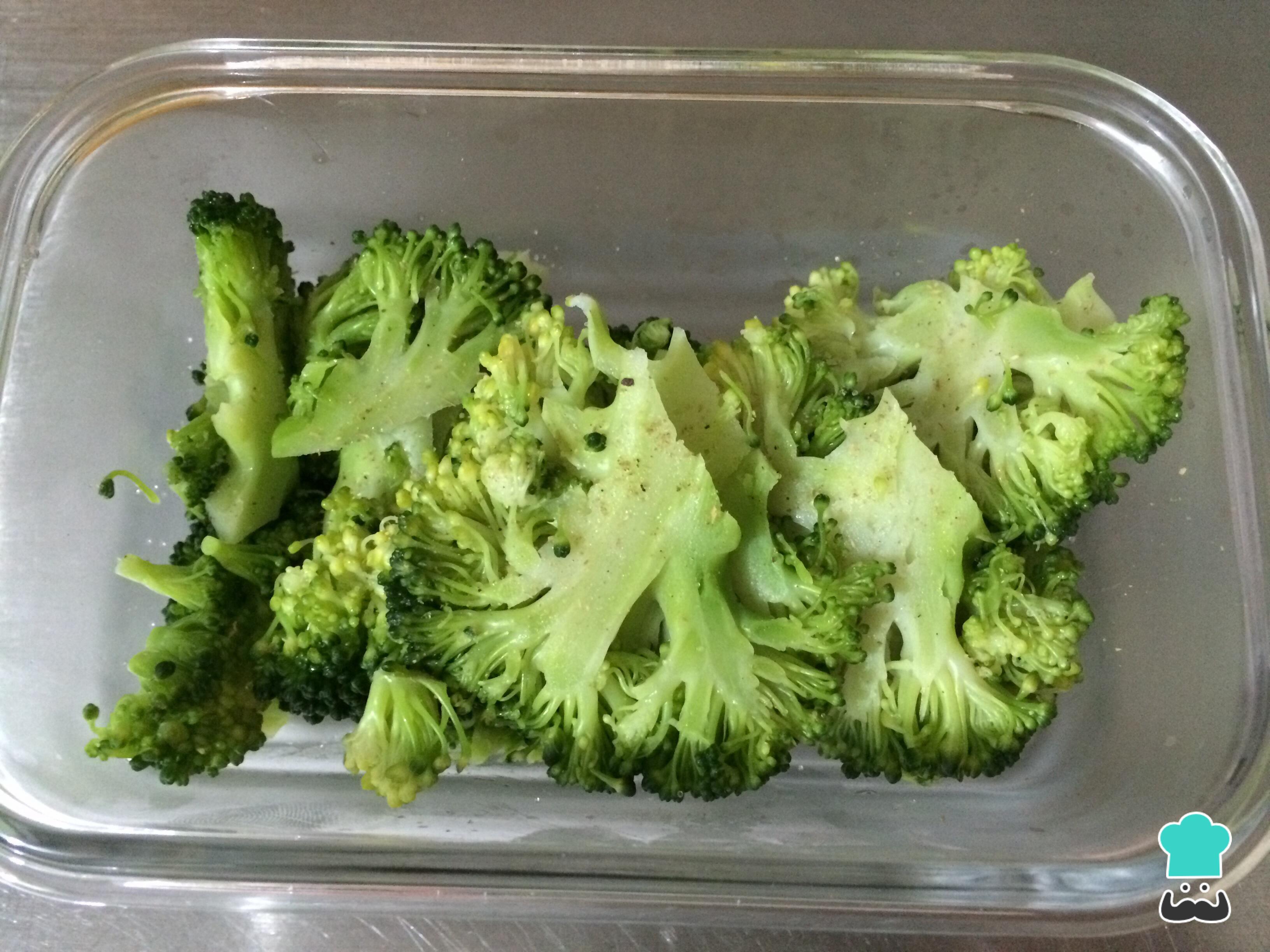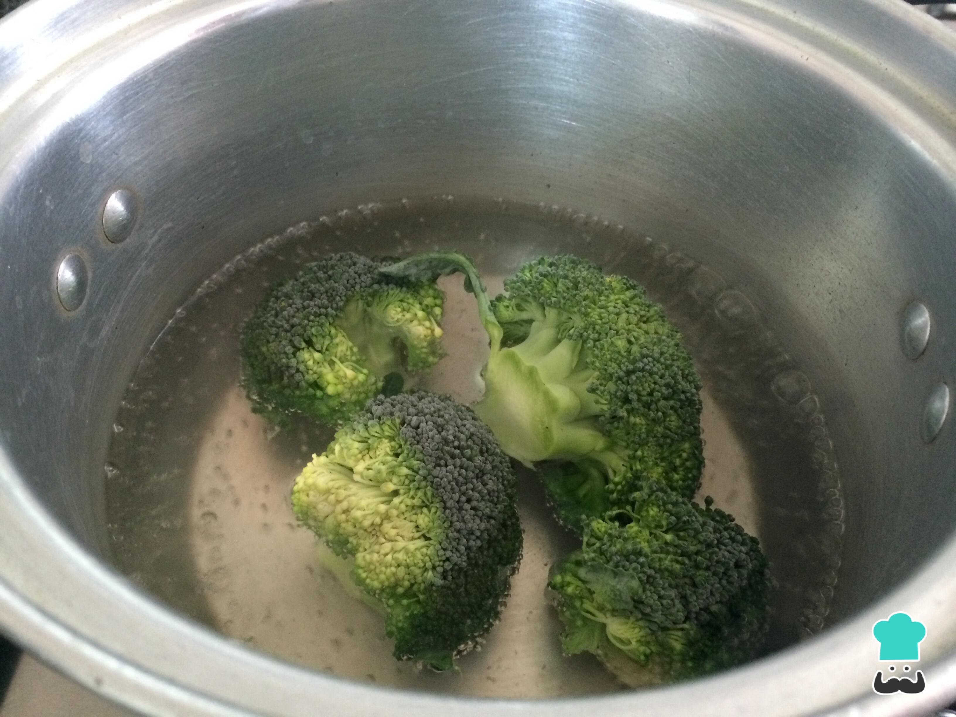 En una olla con agua hirviendo y una pizca de sal, cocinar los arbolitos de brócoli durante 5 minutos a fuego fuerte.