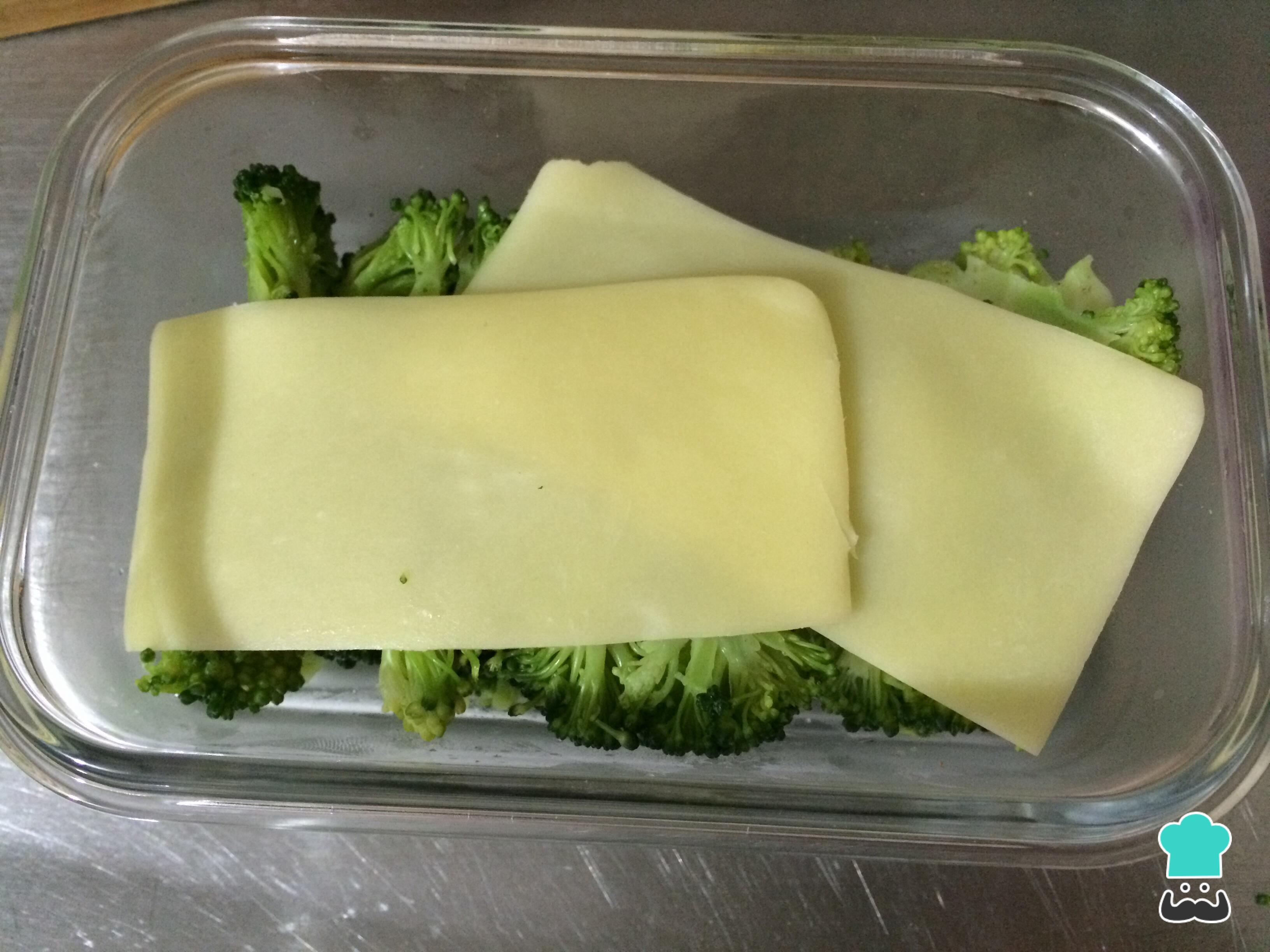 Disponer sobre el brócoli el queso mozzarella y llevar al horno a 180º C. hasta que gratine.