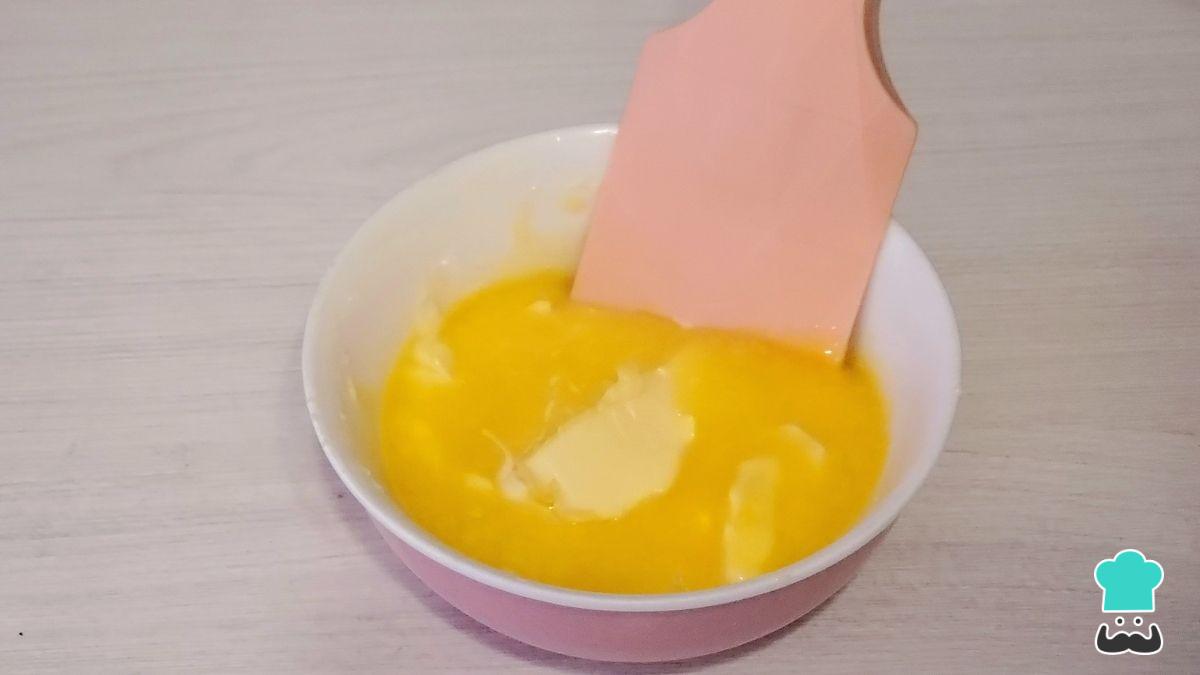 Aparte, derrite el chocolate blanco y añade la mantequilla. Puedes derretirlos juntos, pero si lo haces asegúrate de mezclar bien.