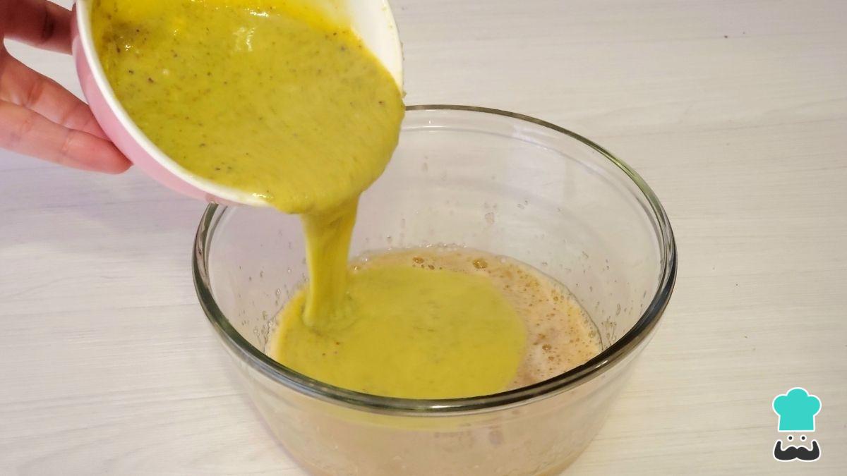 Remueve con el batidor de globo hasta que se disuelvan todos los grumos y luego puedes añadir los trozos de pistacho que reservaste anteriormente.