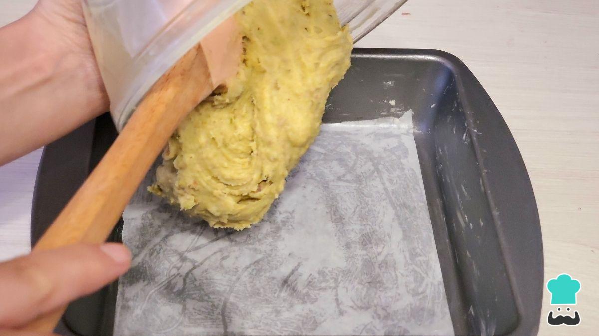 Vierte la mezcla inmediatamente en un molde que debe tener papel manteca en la base. Esparce hasta que la superficie quede lisa.