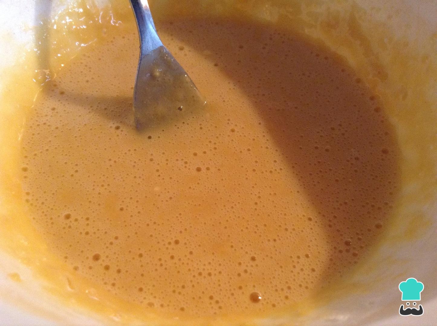 Añade la leche hasta que se forme una masa o una tempura homogénea.