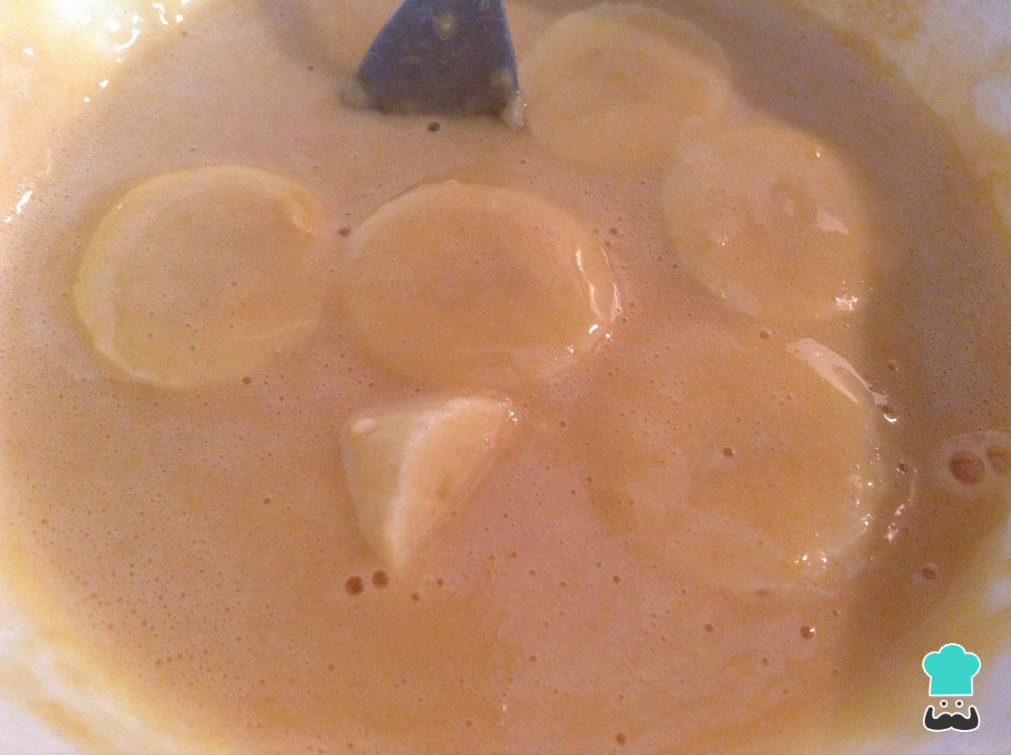 Baña los trozos de banana en la tempura realizada anteriormente. Procura que cada trozo se impregne por completo con la mezcla.