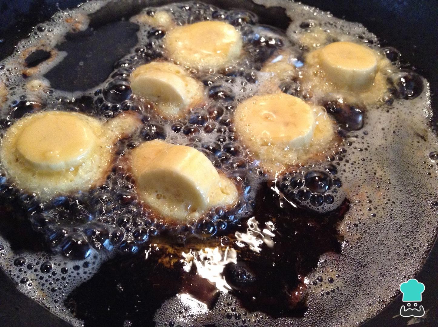 Lleva una sartén a fuego medio con aceite para freír y una vez caliente, añade los buñuelos de banana. Debes controlar la temperatura del aceite para que éstos no se quemen antes de estar listos.