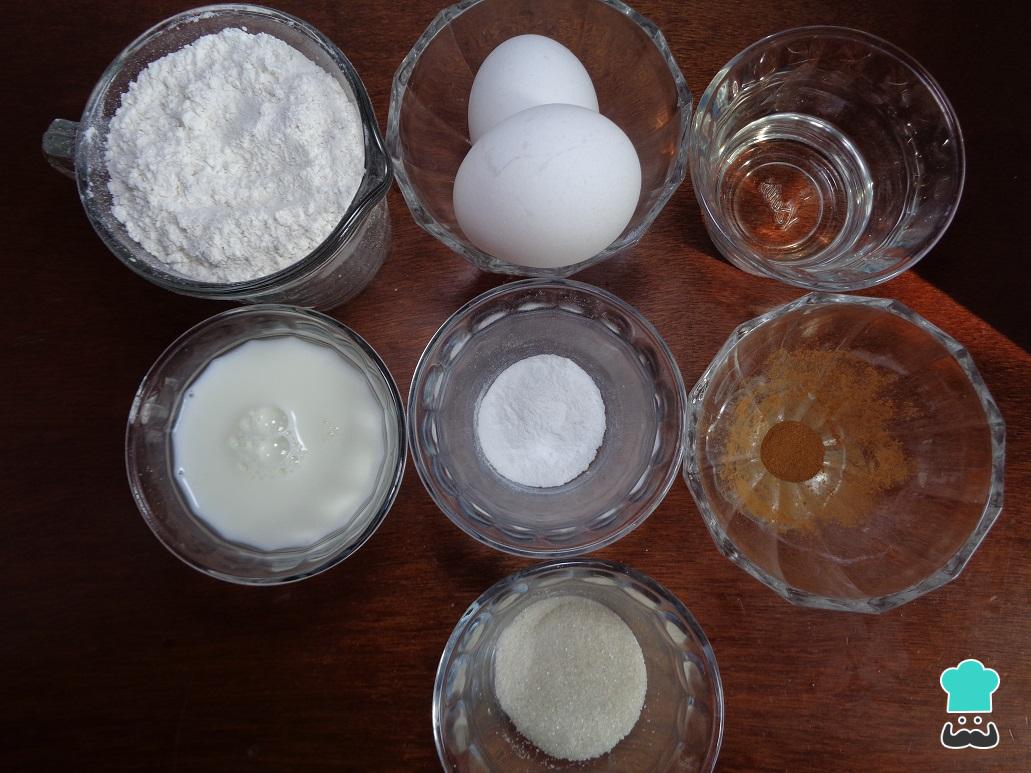En la siguiente imagen podrás observar los ingredientes que necesitaremos para la preparación esta receta de buñuelos mexicanos. No te pierdas ningún detalle.