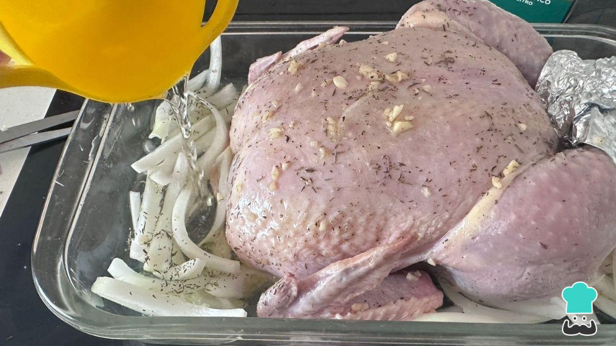 A mitad de cocción, dale la vuelta al capón para que se cocine de manera uniforme.