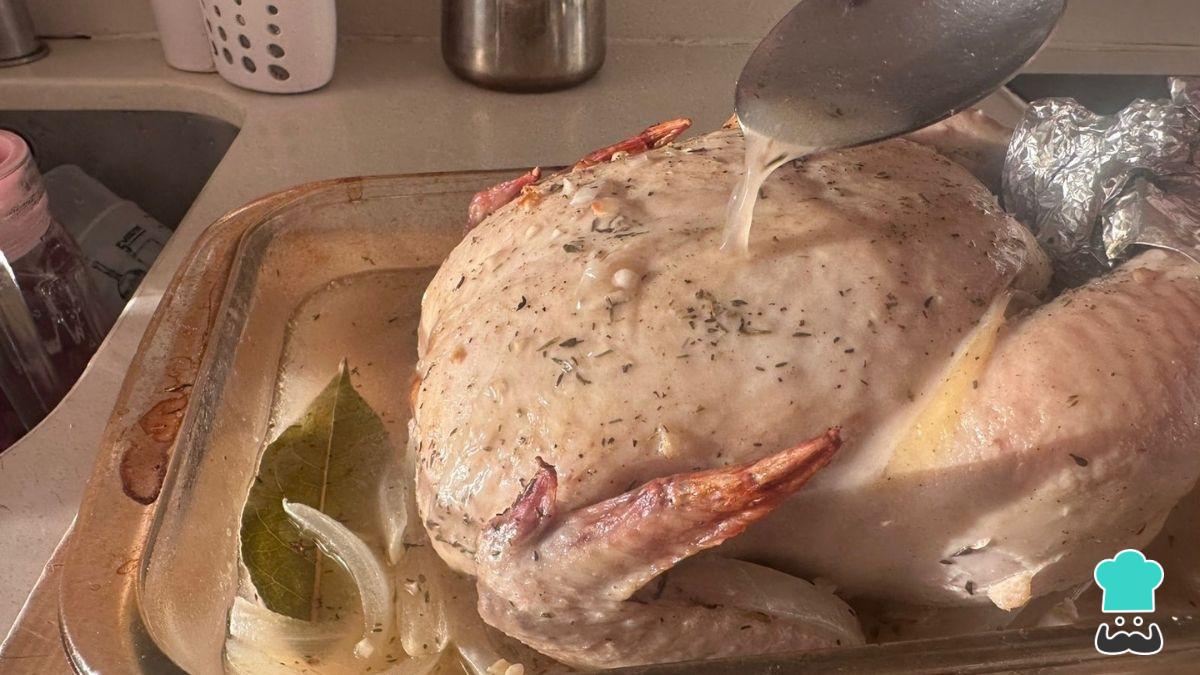 - Regar constantemente el capón con sus jugos evita que la pechuga se reseque.