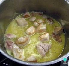 Se frie el tocino y la cebolla ya que esta medio frito el tocino le agregas la carne y la fries hasta que se ponga de color café. (doradita).