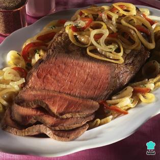 Retirar y cortar la carne en rodajas delgadas Colocar en una fuente con todo el jugo y verduras ya cocidas por encima y dejar en heladera hasta el otro día.