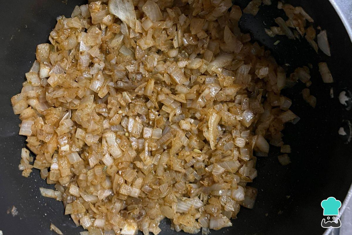 Cuando la cebolla esté cocida y suave, aproximadamente 20 a 30 minutos, retira del fuego y reserva.