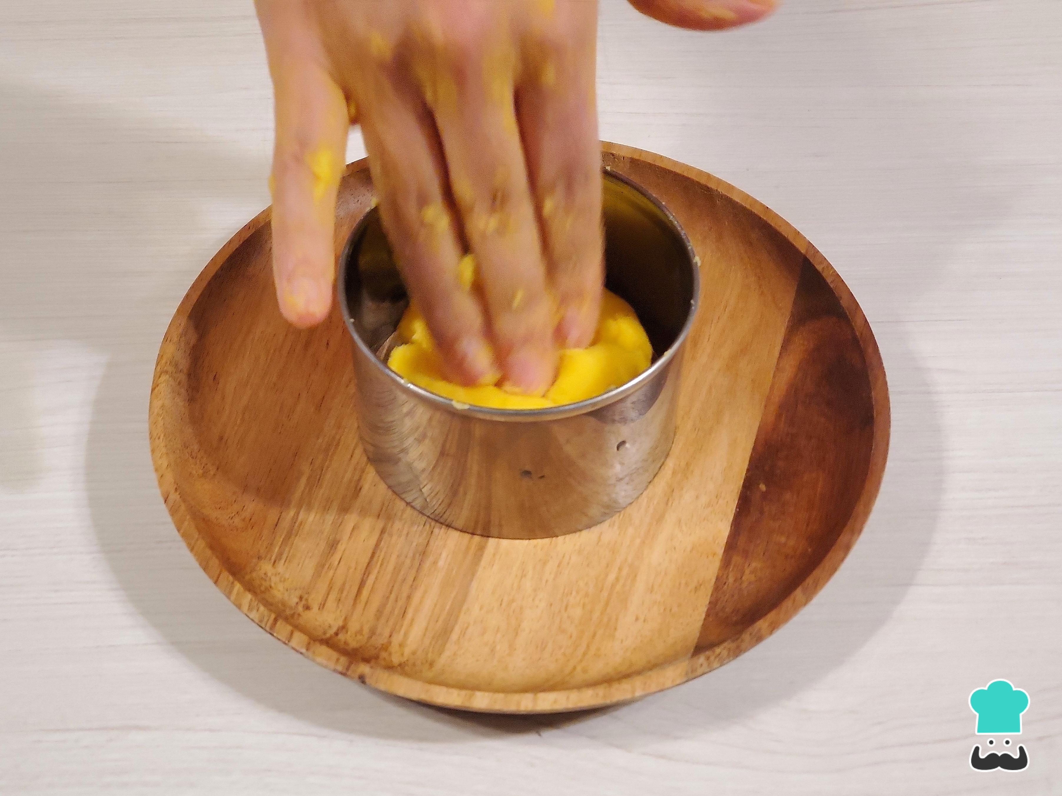 Pasa a armar la causa en un aro engrasado o en una bandeja profunda. Empieza esparciendo una porción de la masa de papa, estírala y aplástala hasta que quede compacta.