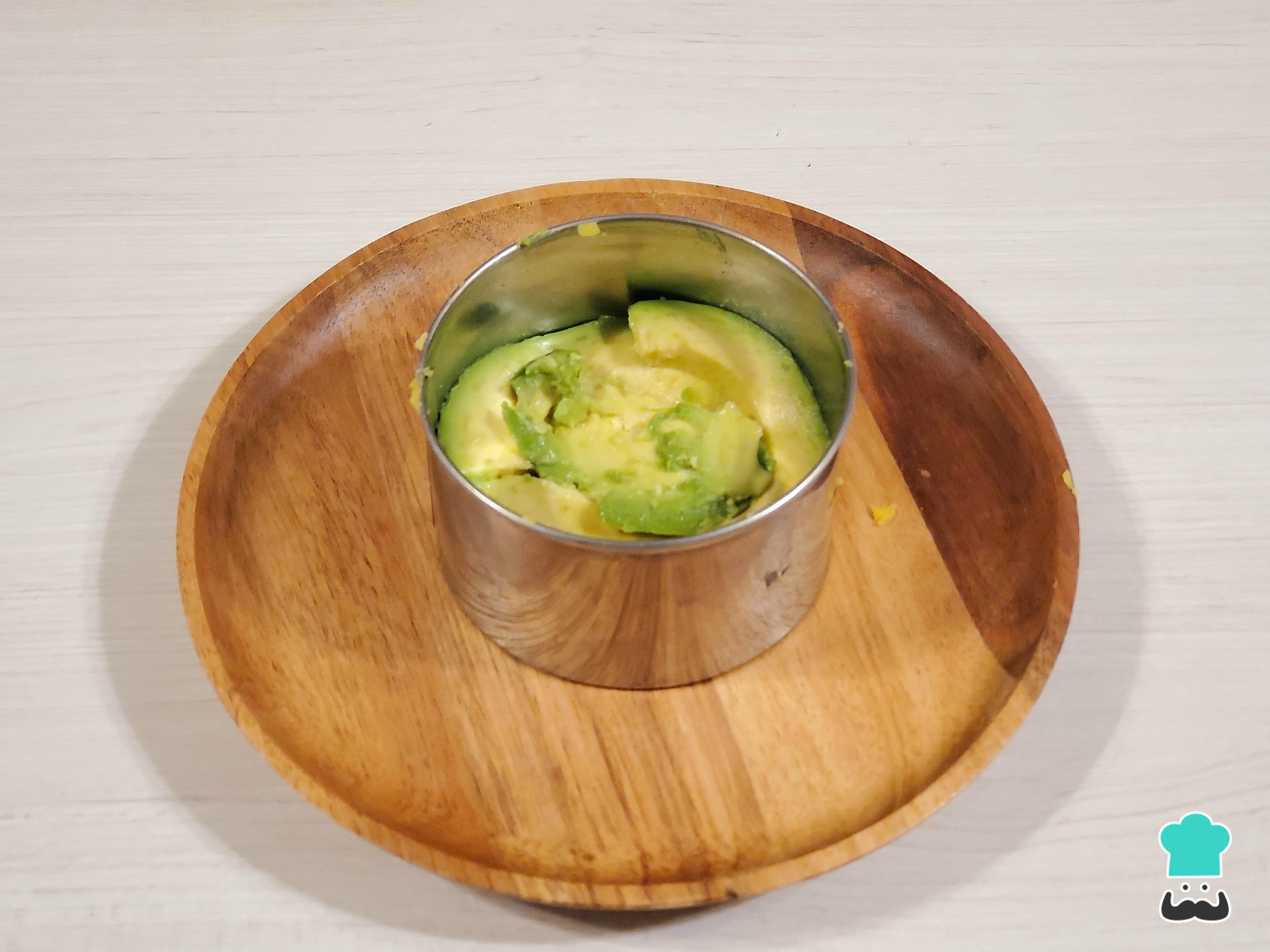 Acomoda encima la palta cortada en láminas delgadas de manera pareja.