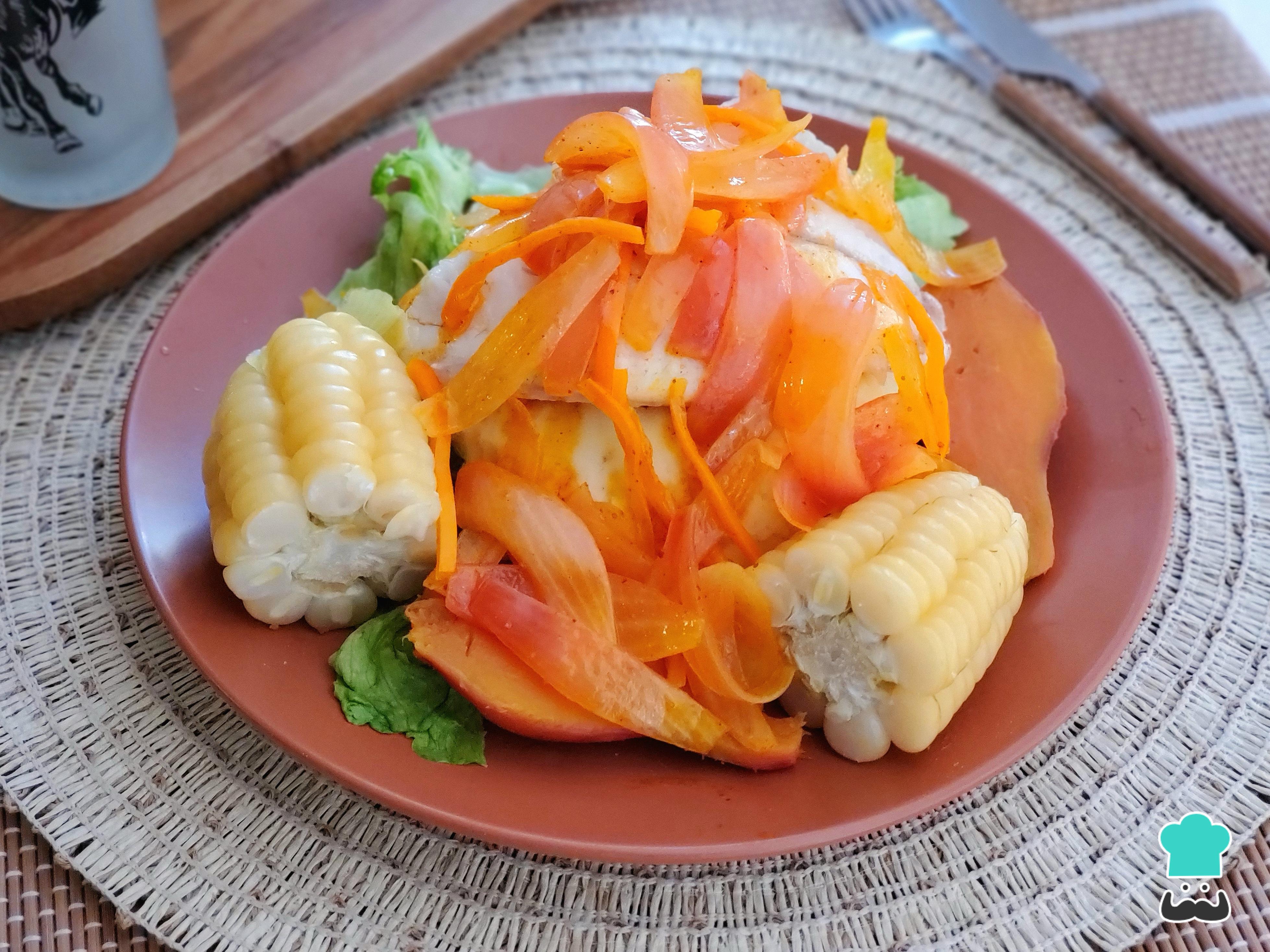 Sirve inmediatamente este plato. Coloca una porción de la masa de papa en una bandeja y acomoda las yucas, camotes, rodajas de choclo, plátano y lechuga alrededor. Encima, coloca un filete de pescado, vierte el escabeche y cubre con abundante salsa. Para decorar, coloca unas aceitunas y unos huevos duros cortados en gajos. ¡Buen provecho! Cuéntanos en los comentarios tu opinión y comparte con nosotros una fotografía del resultado final.