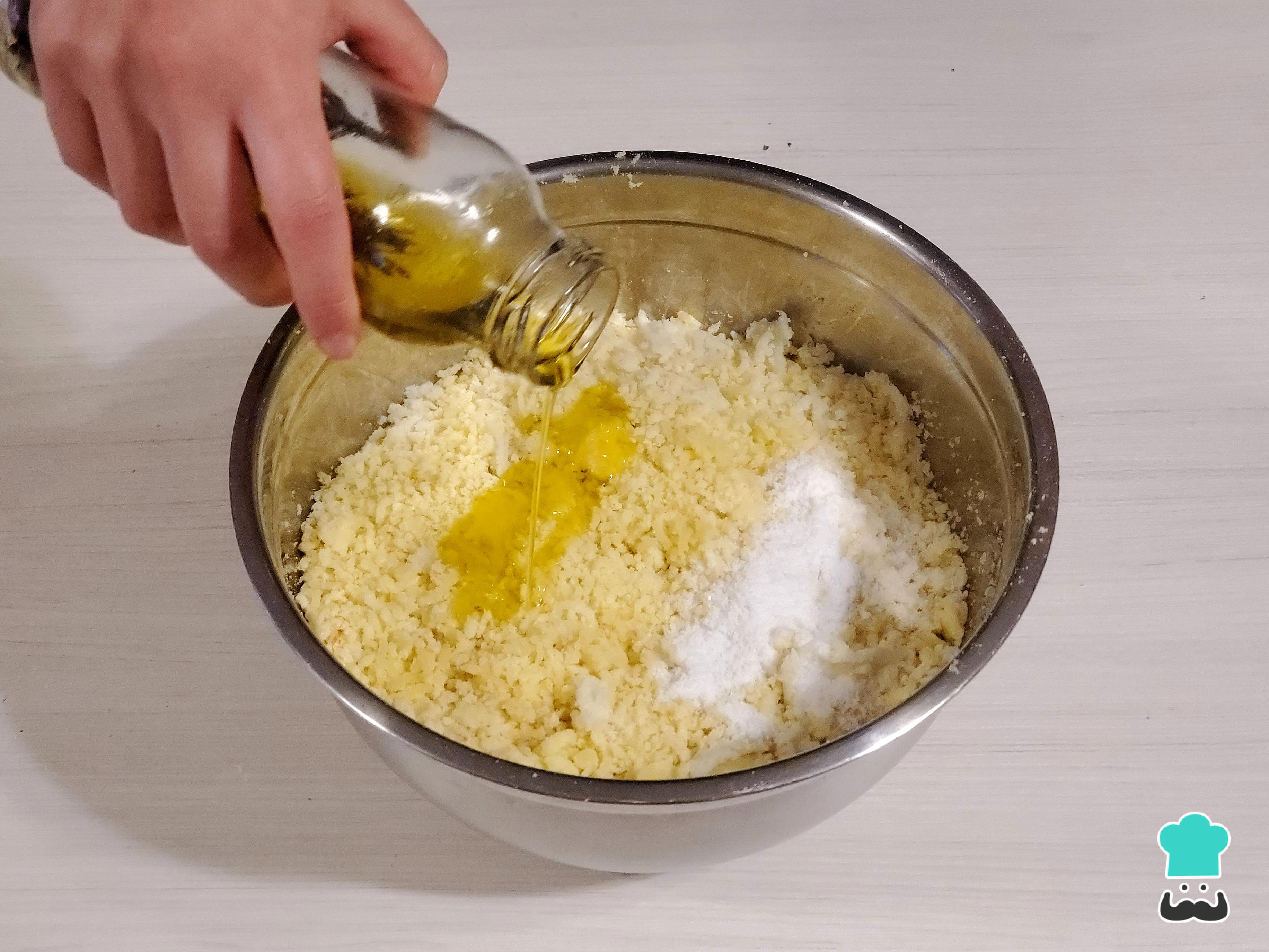 Sazona la papa con sal y aceite y amasa para conseguir una pasta suave y llena de sabor.
