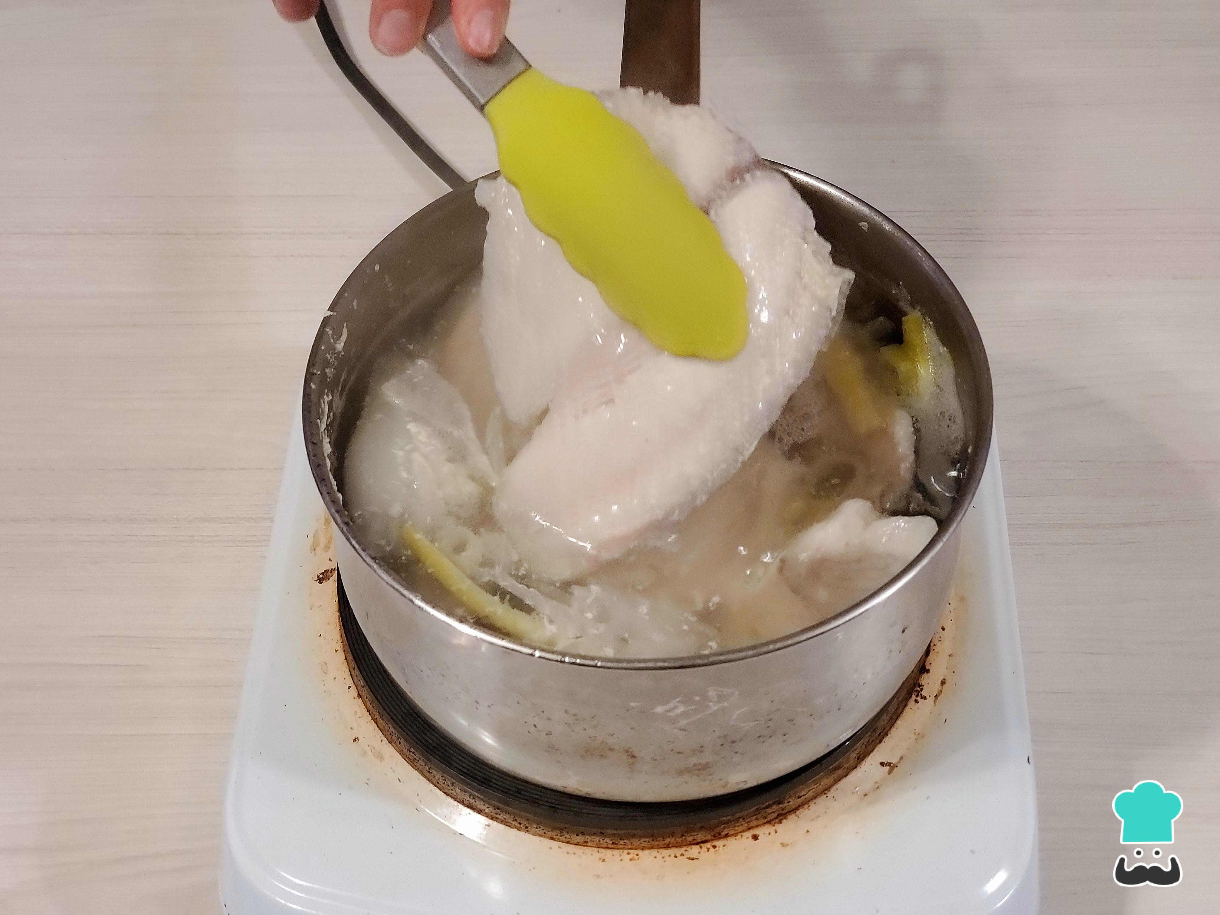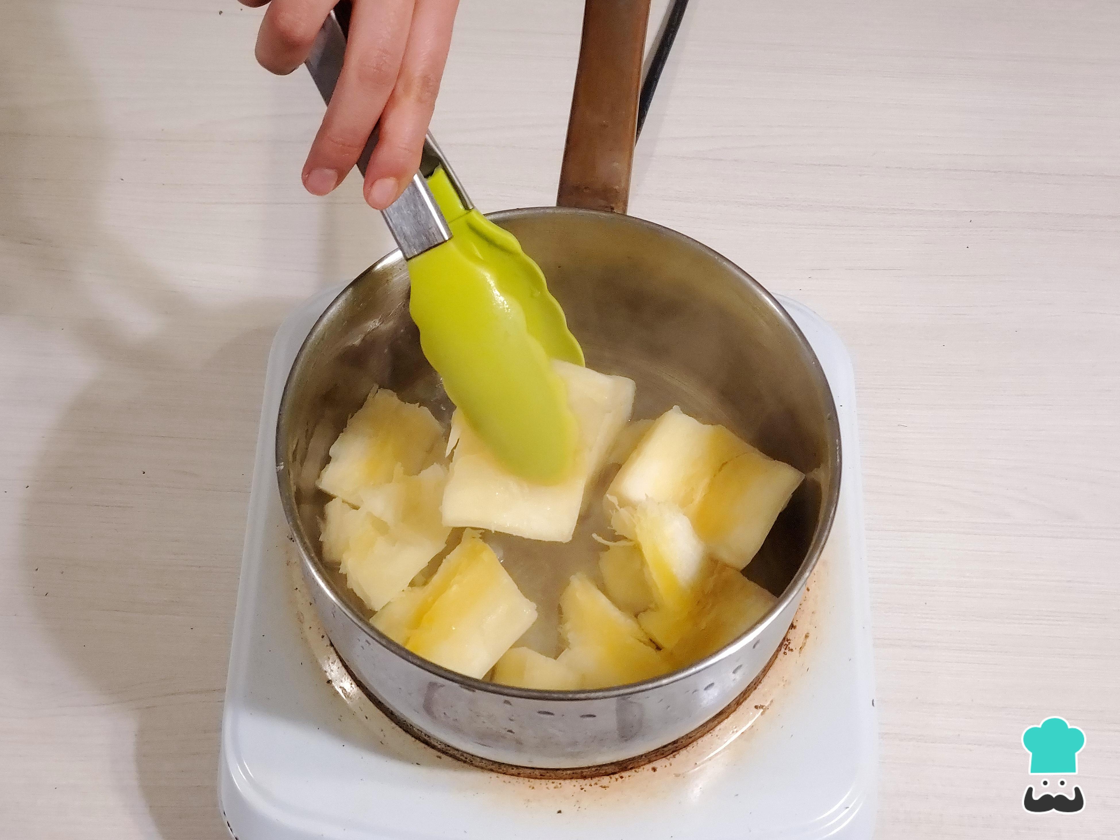 Pon a hervir agua en otra olla para pochar el pescado por un par de minutos. Para una causa peruana más tradicional, el pescado debe ser de carne blanca, seco y salado, por lo que se debe dejar remojando toda la noche en abundante agua.