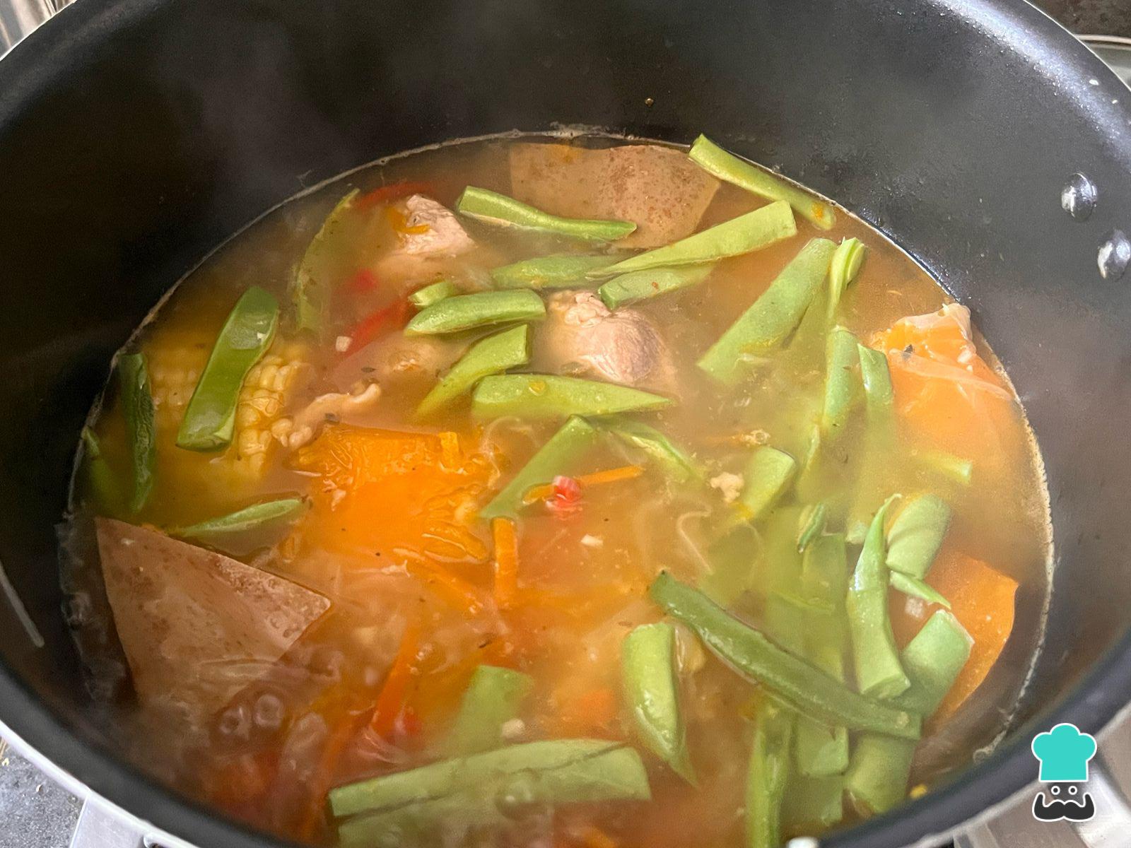 Añade los porotos verdes cuando las papas estén casi cocidas.