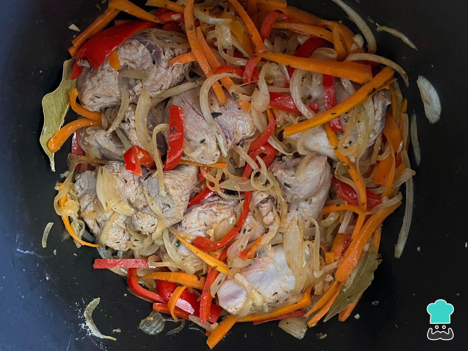 Añade el cerdo en la olla y sella hasta que estén doradas por ambos lados.