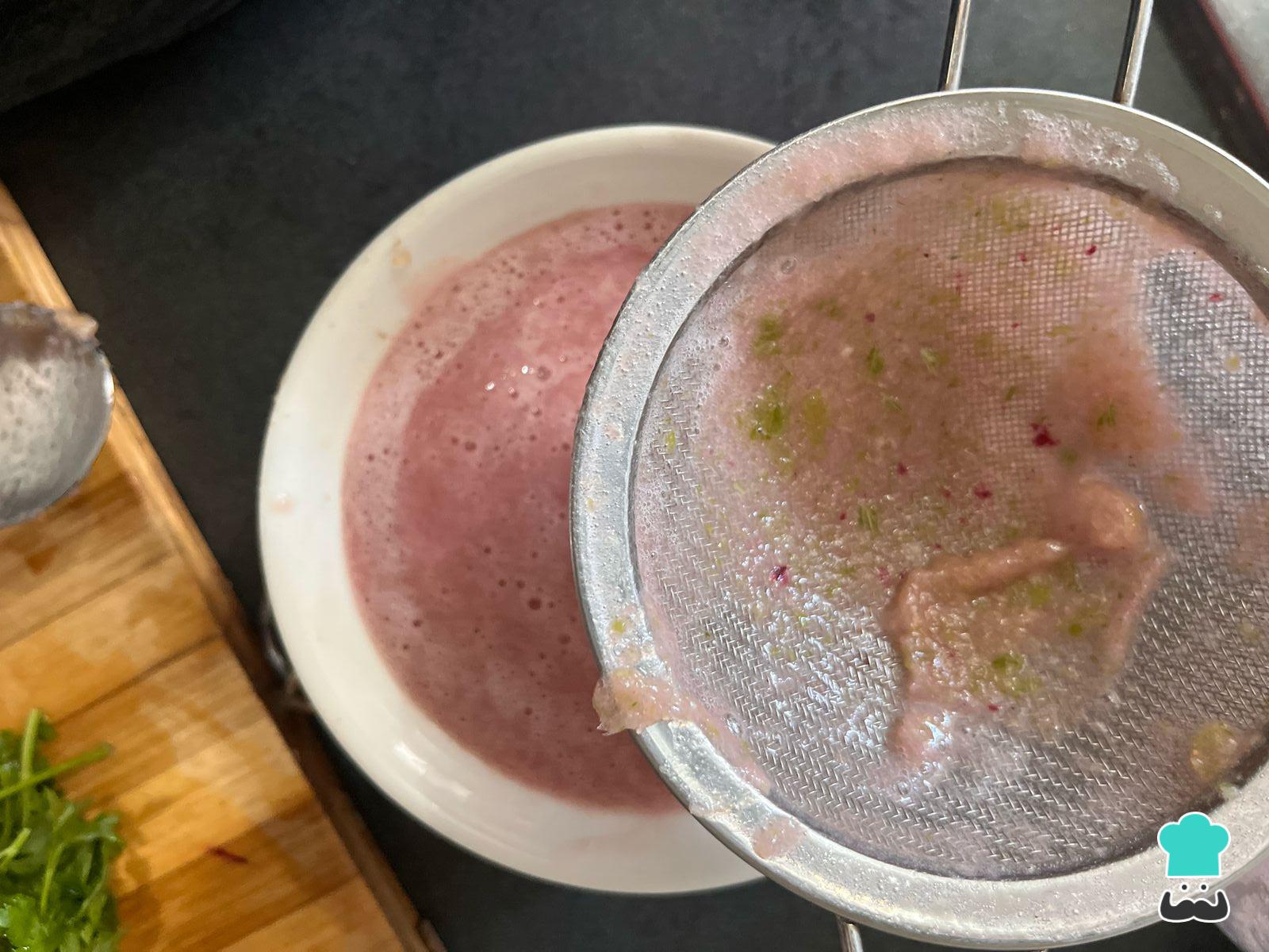 Procesa los ingredientes en la licuadora y, luego, pasa la mezcla por un colador.