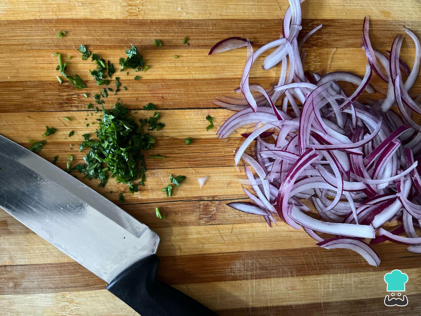 Agrega al ceviche la cebolla, el cilantro y la leche de tigre, deja reposar en el refrigerador por 30 minutos antes de consumir.
