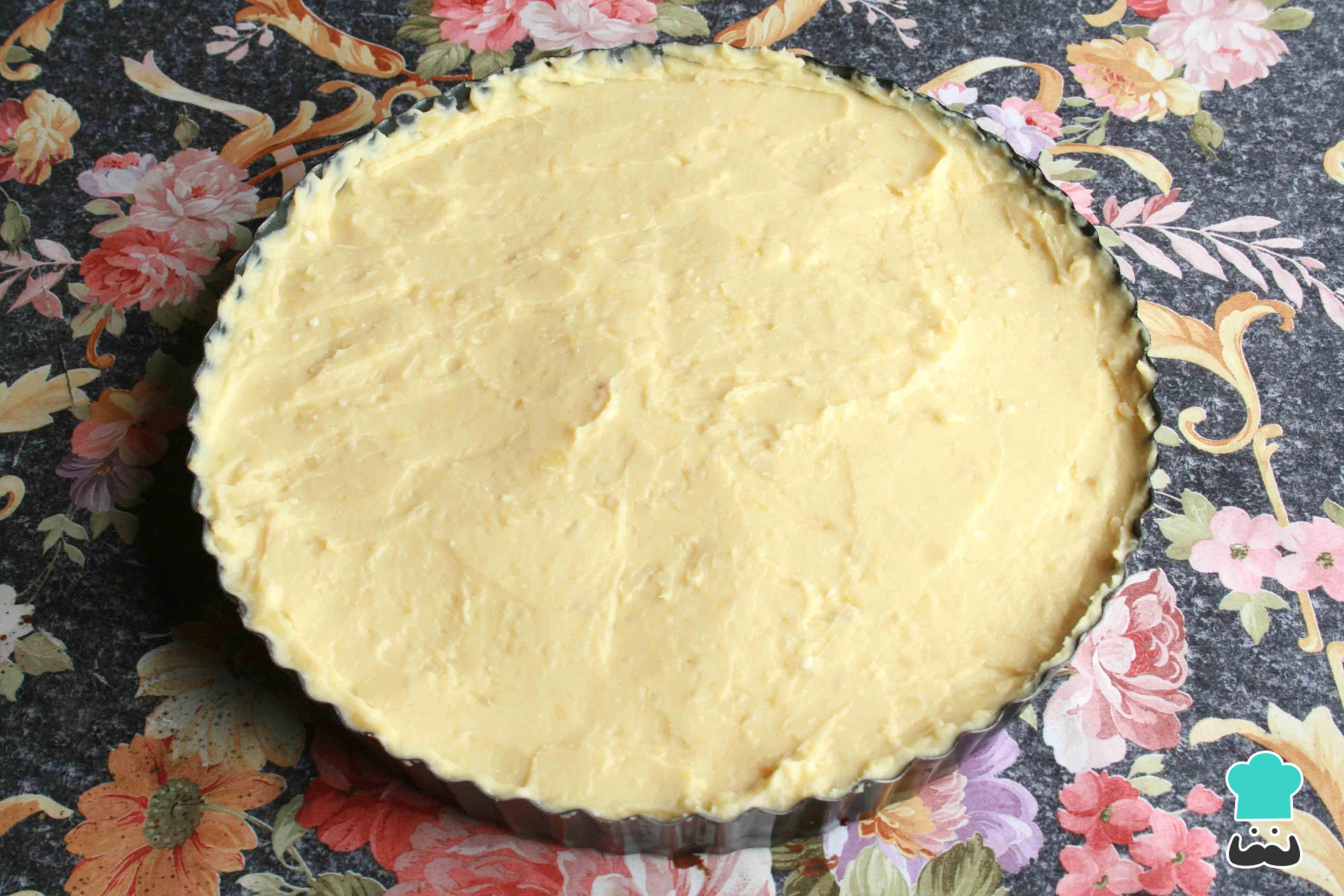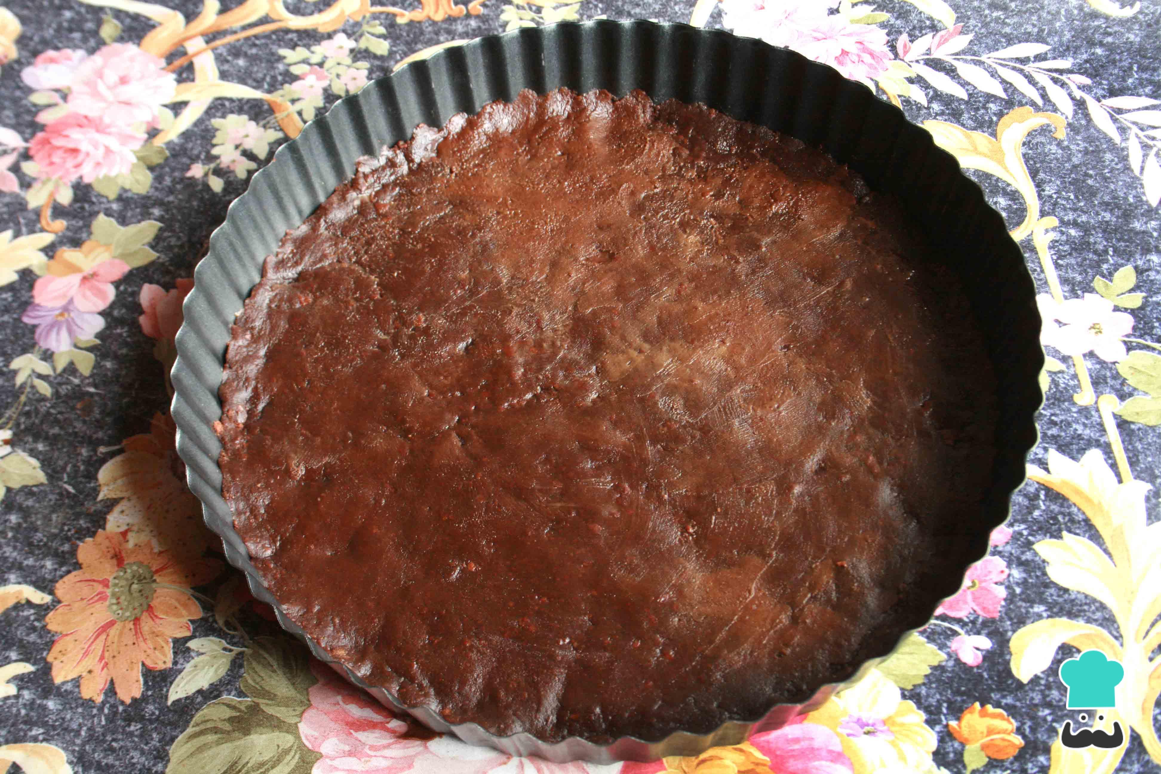 Engrasa un molde con muy poca mantequilla o aceite (preferiblemente utiliza un molde desmoldable y anti-adherente). Extiende la base de forma proporcional.