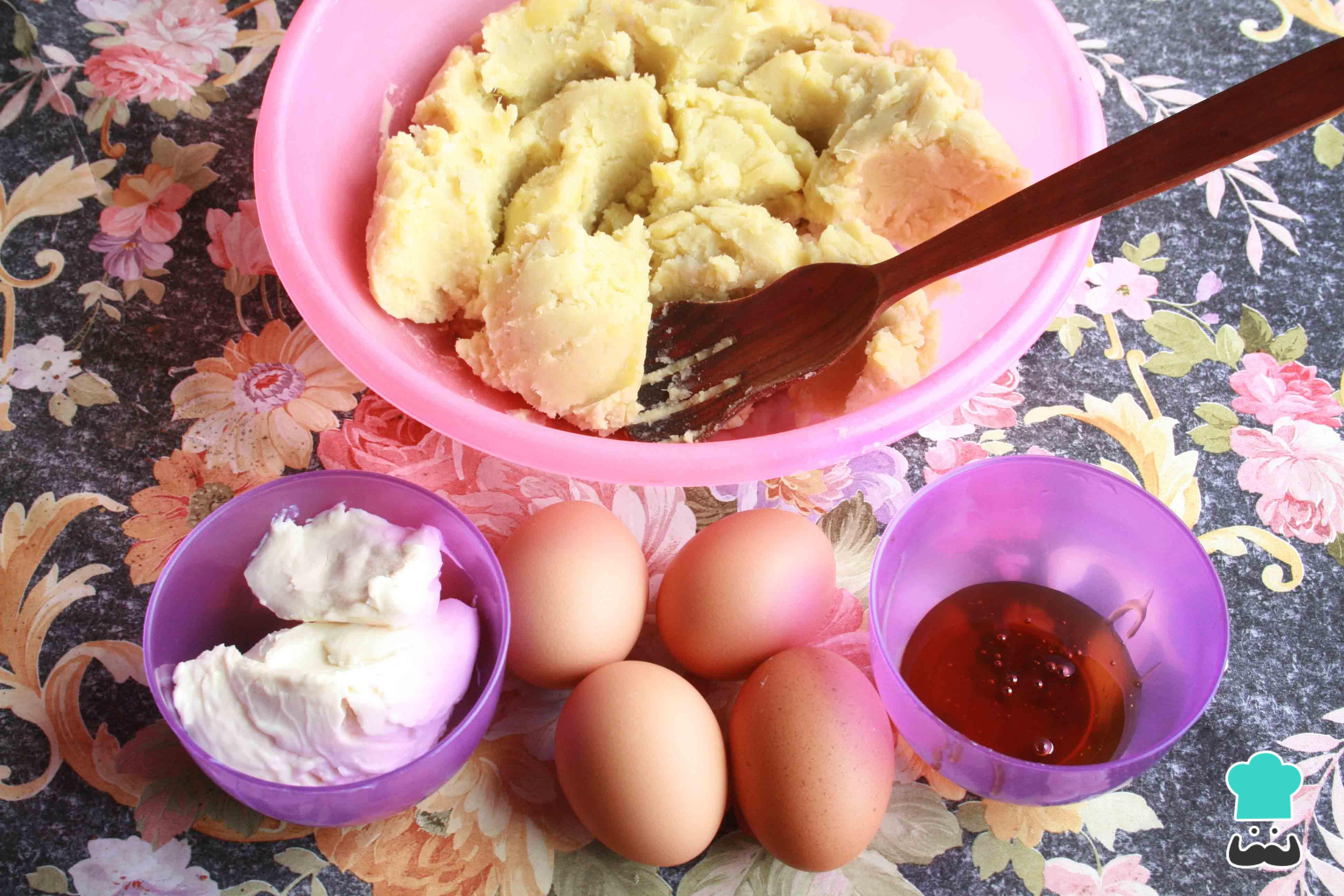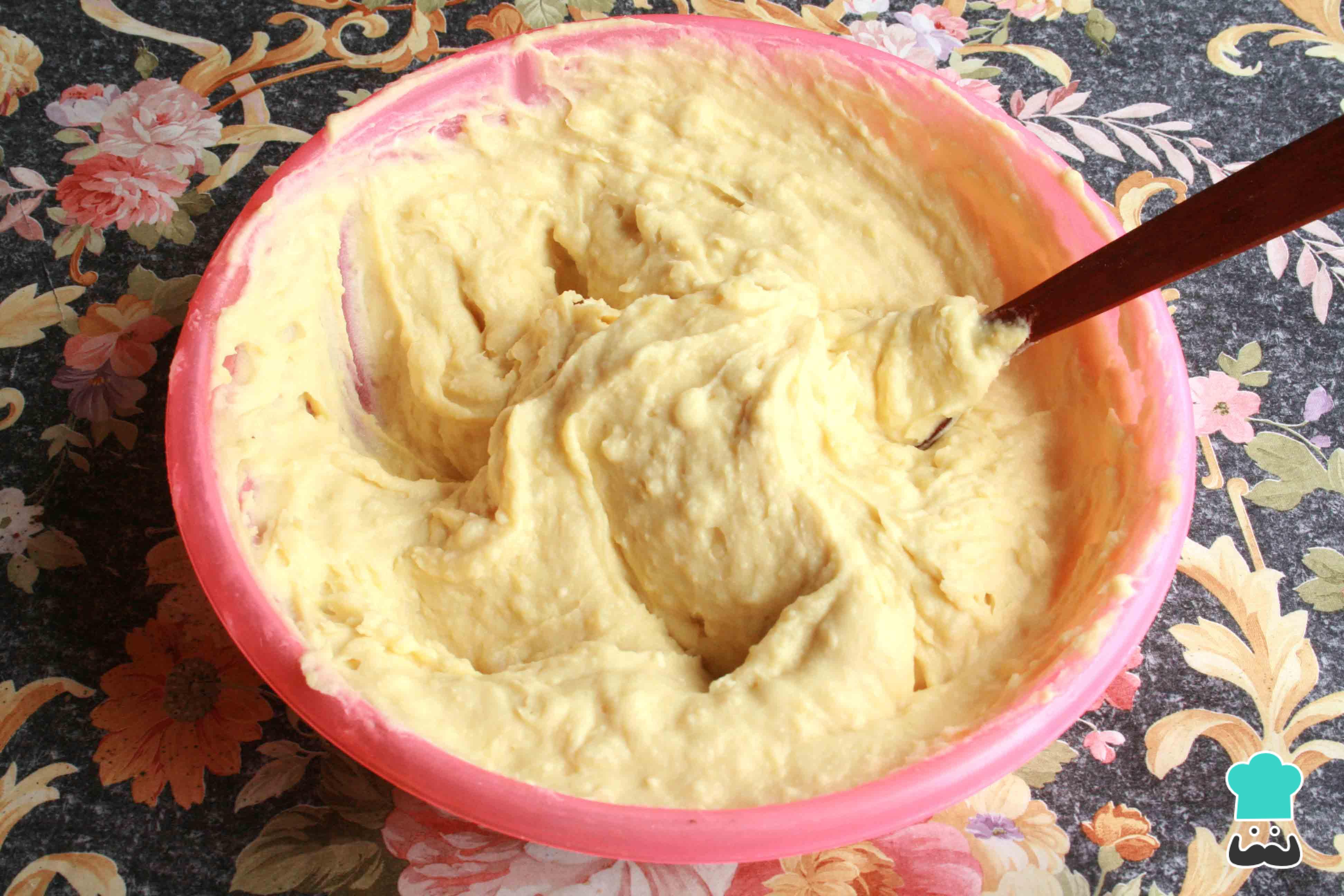 Mezcla muy bien el puré con el resto de los ingredientes del pastel de boniato sencillo hasta lograr una consistencia suave pero pareja.