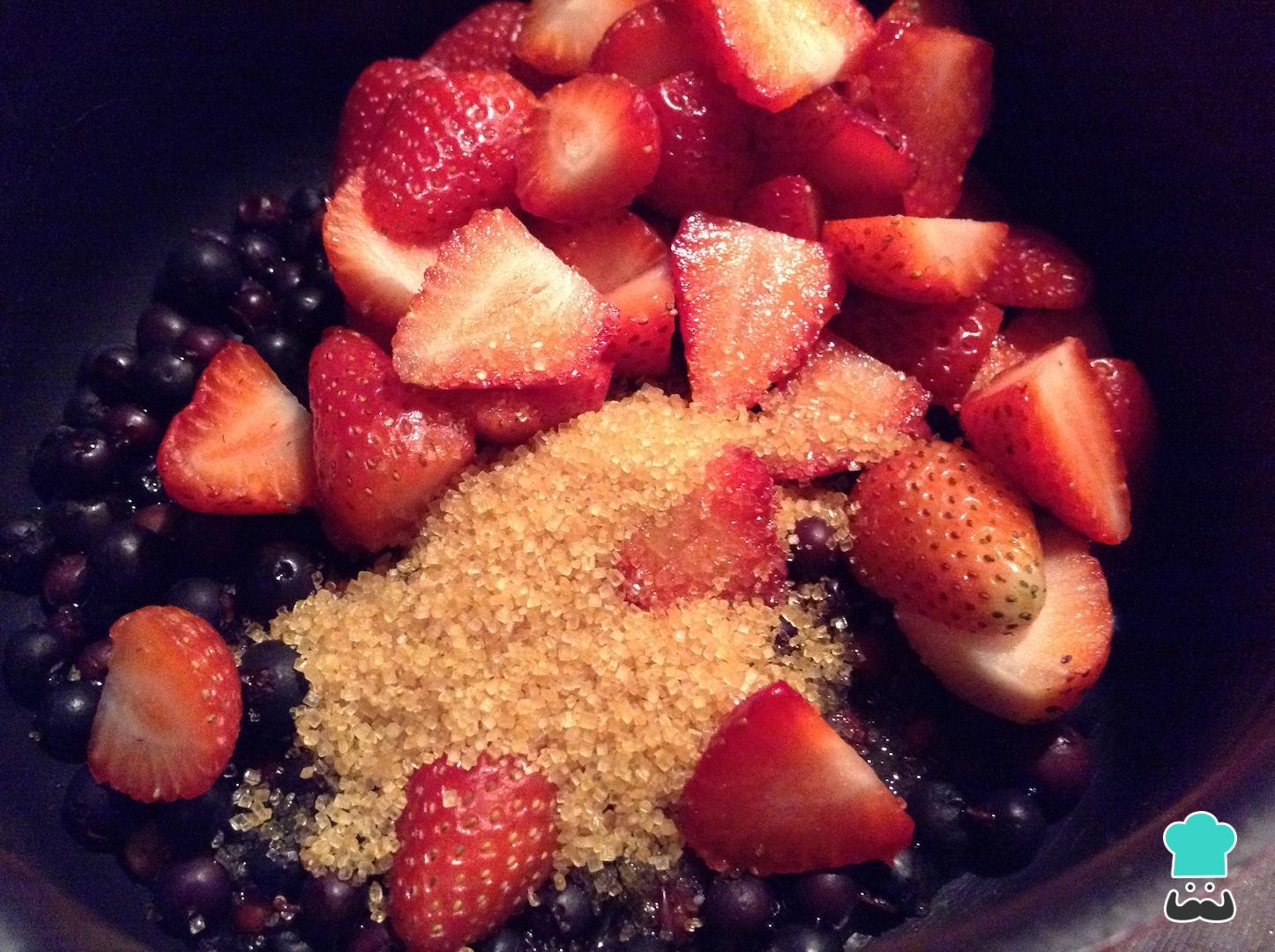 Mientras elcheesecake se encuentra en el horno puedes ir preparando la salsa de frutos rojos con la cual decorarás la tarta. Entonces, en una olla honda agrega los ingredientes de la salsa de frutos rojos y llévalos a fuego medio. Observarás que las frutas se cocinan y la salsa base se torna más espesa, como un almíbar. En este punto, apaga el fuego.