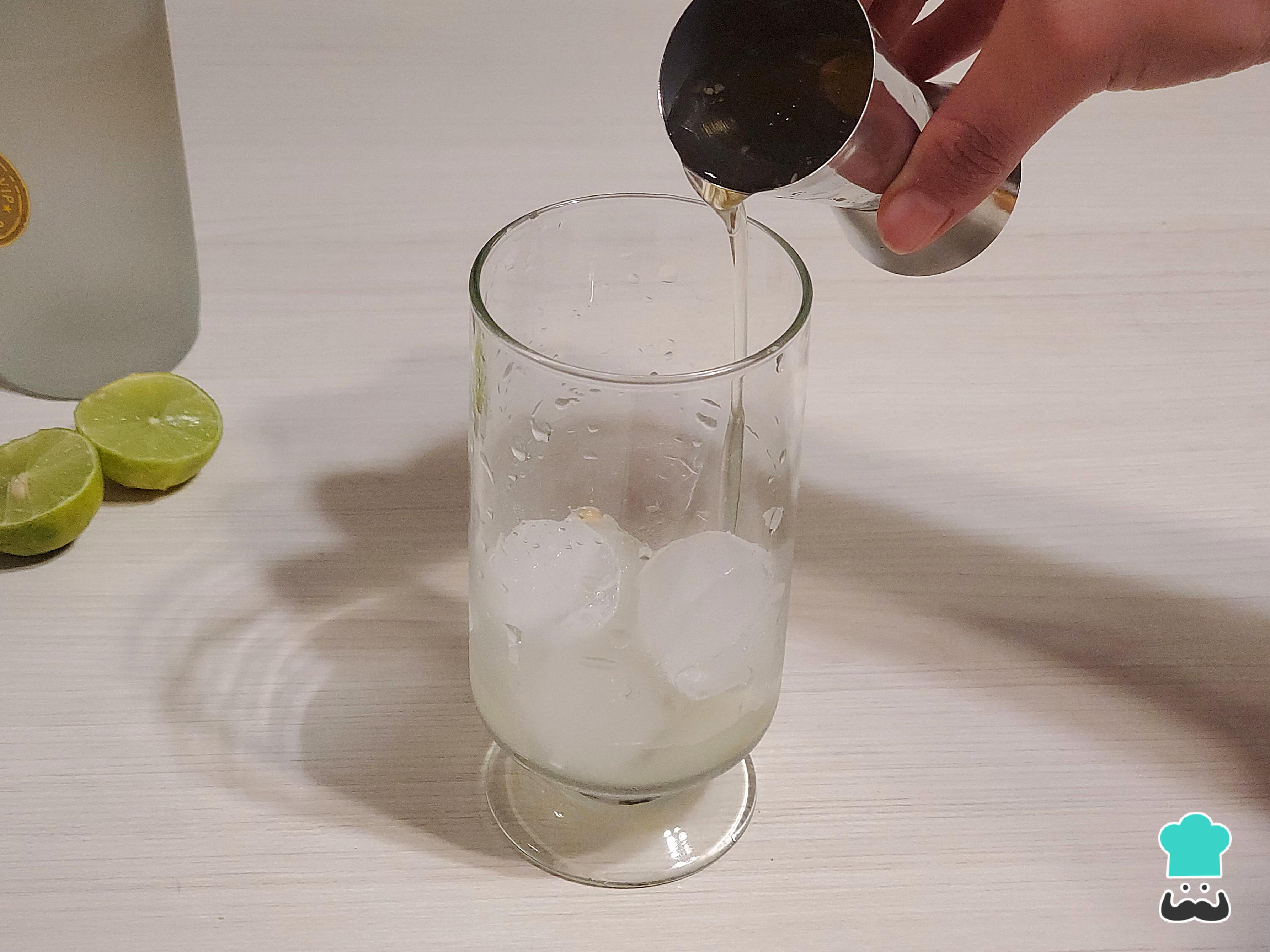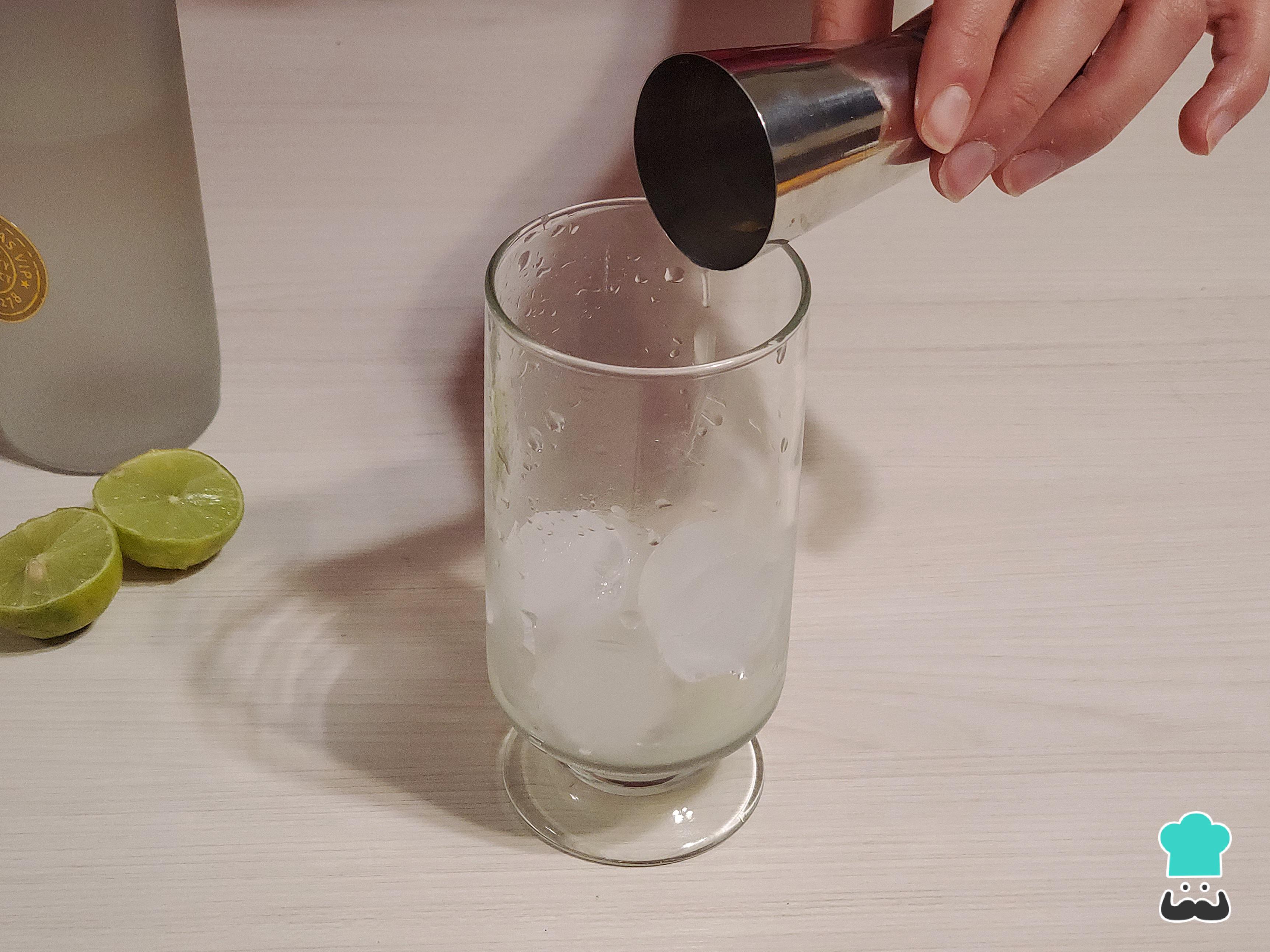 Mide el jugo de limón con una onza y viértelo en el vaso.