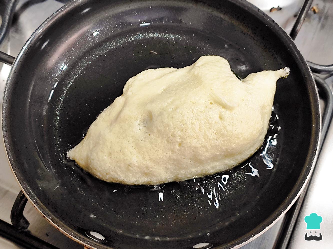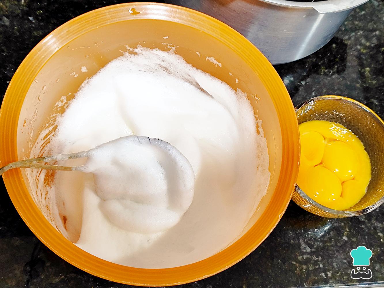 Para el capeado, levanta las claras de huevo hasta punto de nieve y, cuando estén listas, agrega las yemas de huevo y mezcla ligeramente.