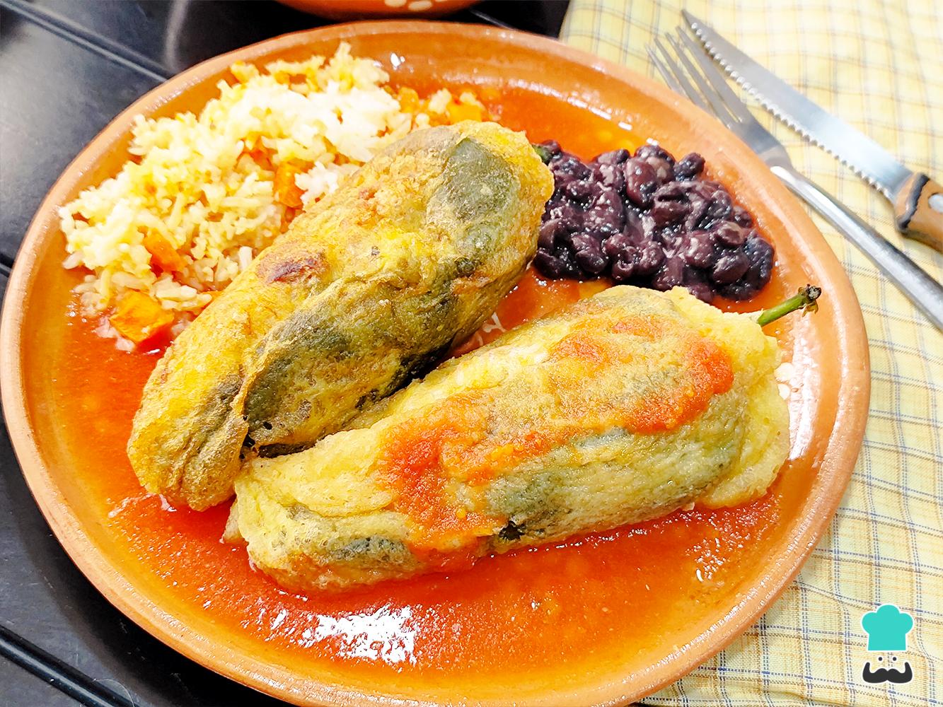 Cuando estén dorados y capeados los chiles, sirve inmediatamente, acompaña con arroz y frijoles de la olla y baña con salsa de tomate. ¡Listos para comer! Cuéntanos en los comentarios tu opinión y comparte con nosotros una fotografía del resultado final.