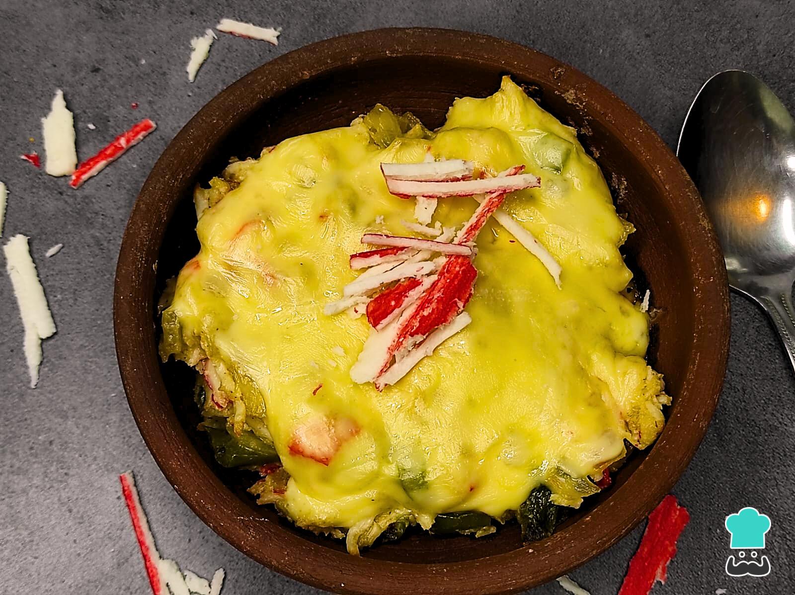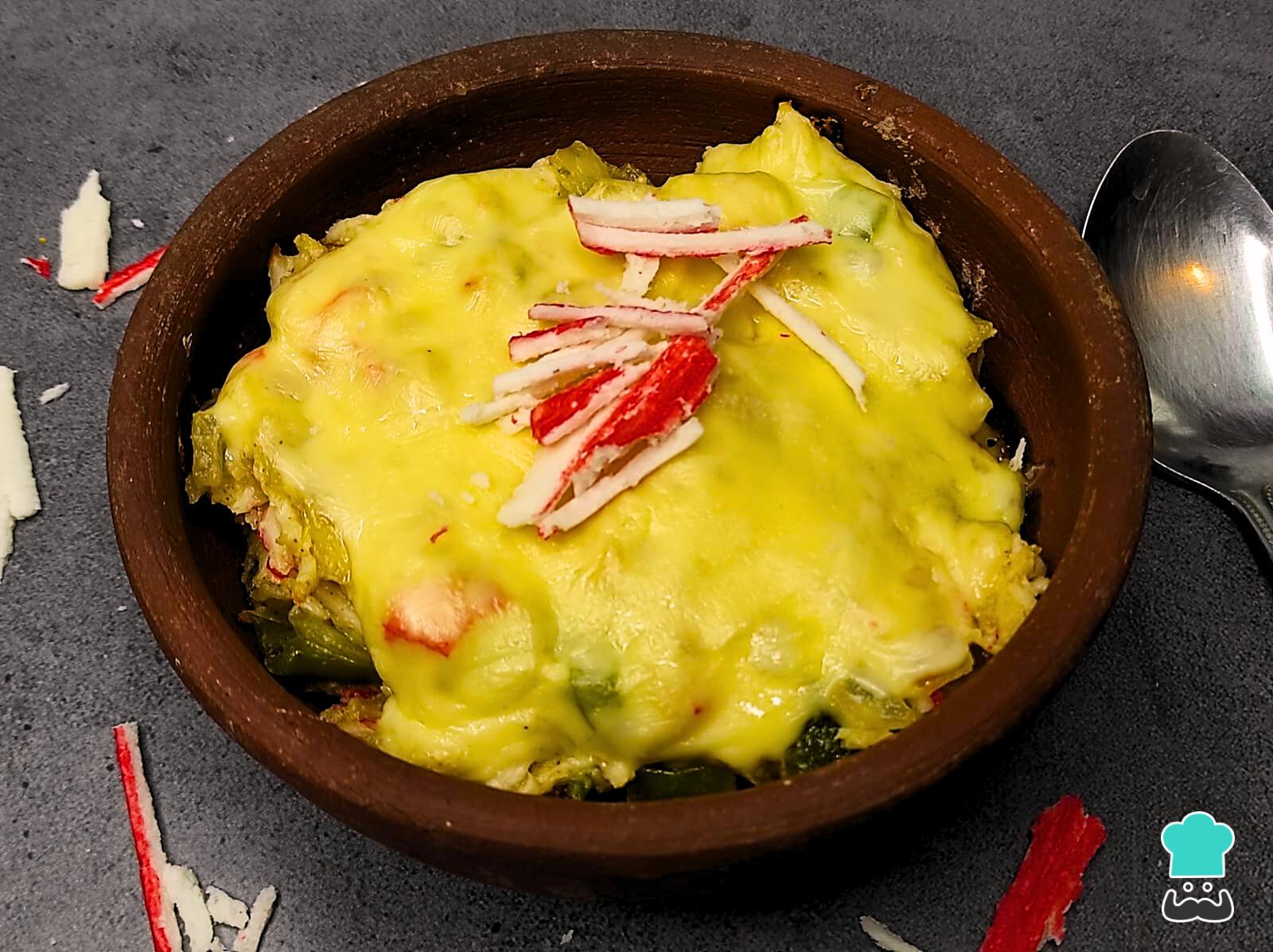 Lleva al horno previamente precalentado a 180 °C con calor arriba y abajo y gratina el queso por aproximadamente 10 minutos o hasta que el queso esté derretido y dorado. Puedes decorar con más carne de centolla en la superficie y listo para disfrutar. Cuéntanos en los comentarios tu opinión y comparte con nosotros una fotografía del resultado final.