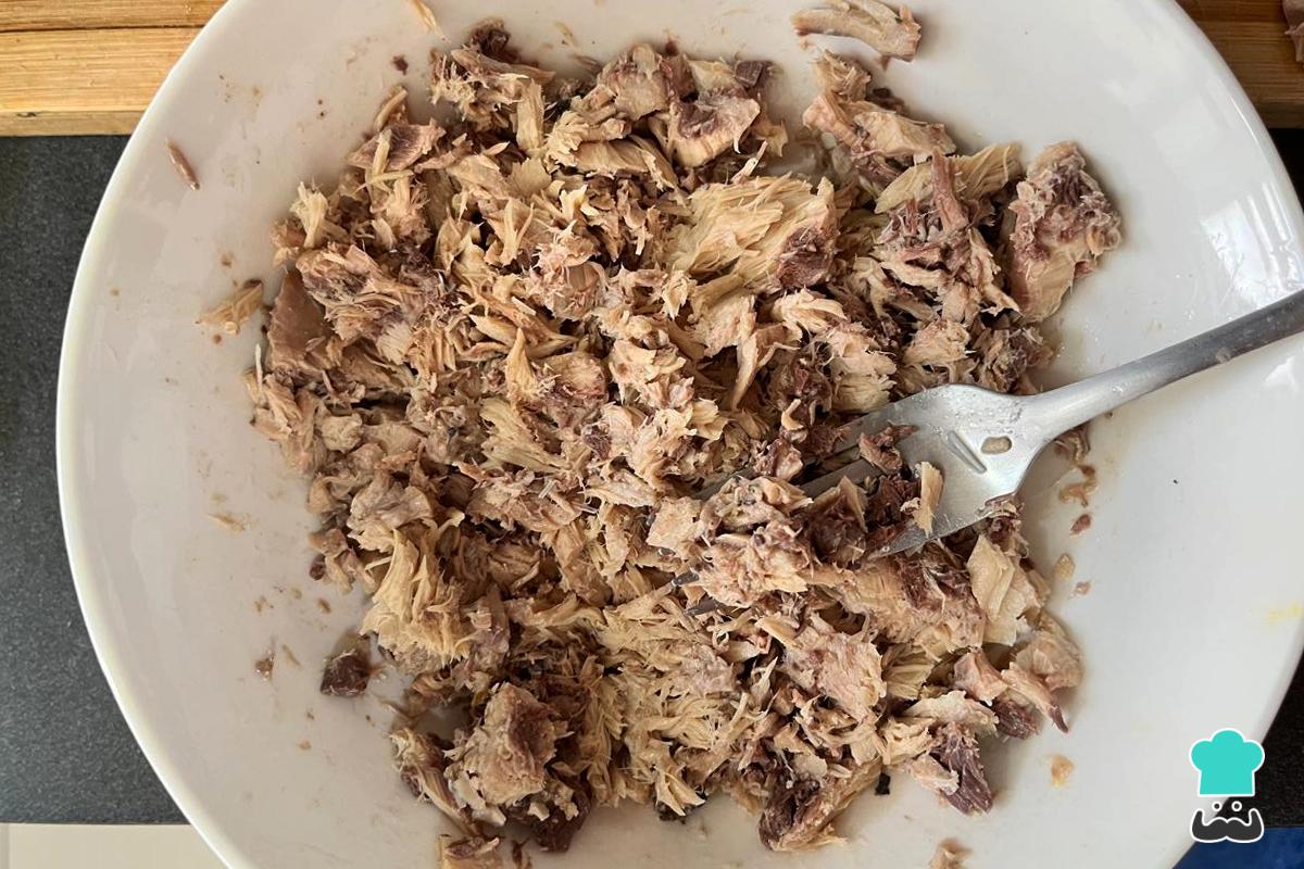Limpia el jurel, retira las espinas y remueve la piel, luego desmenúzalo con ayuda de un tenedor.