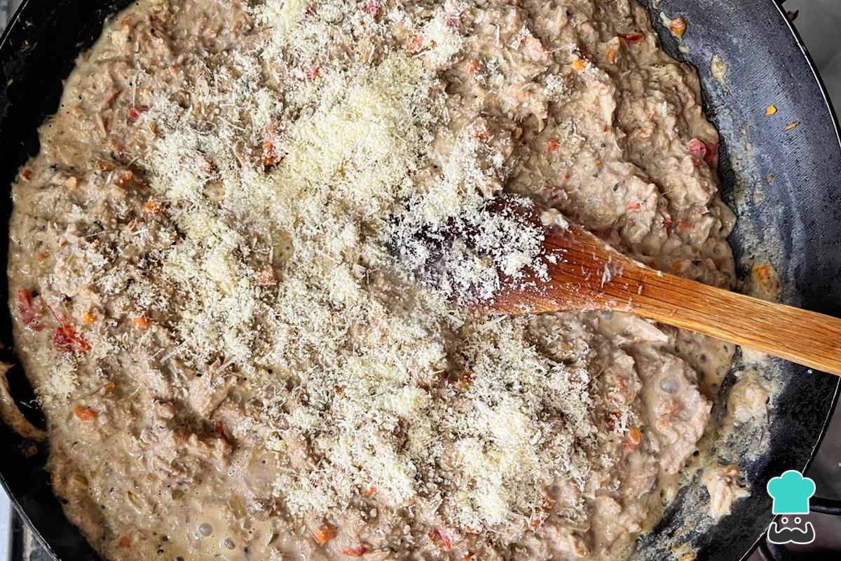 Agrega el queso rallado a la mezcla y remueve por unos minutos más.