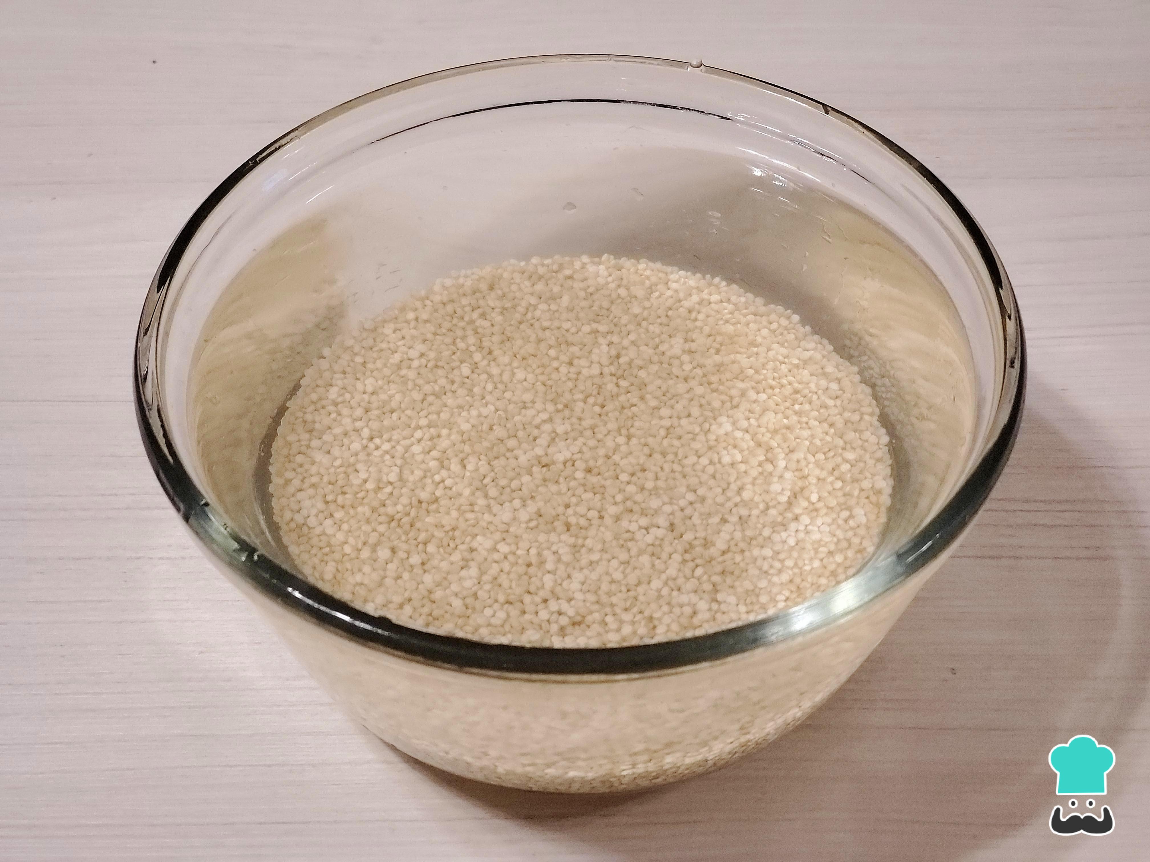 En un bowl remoja la quinua durante 10 minutos aproximadamente, después enjuaga con abundante agua.