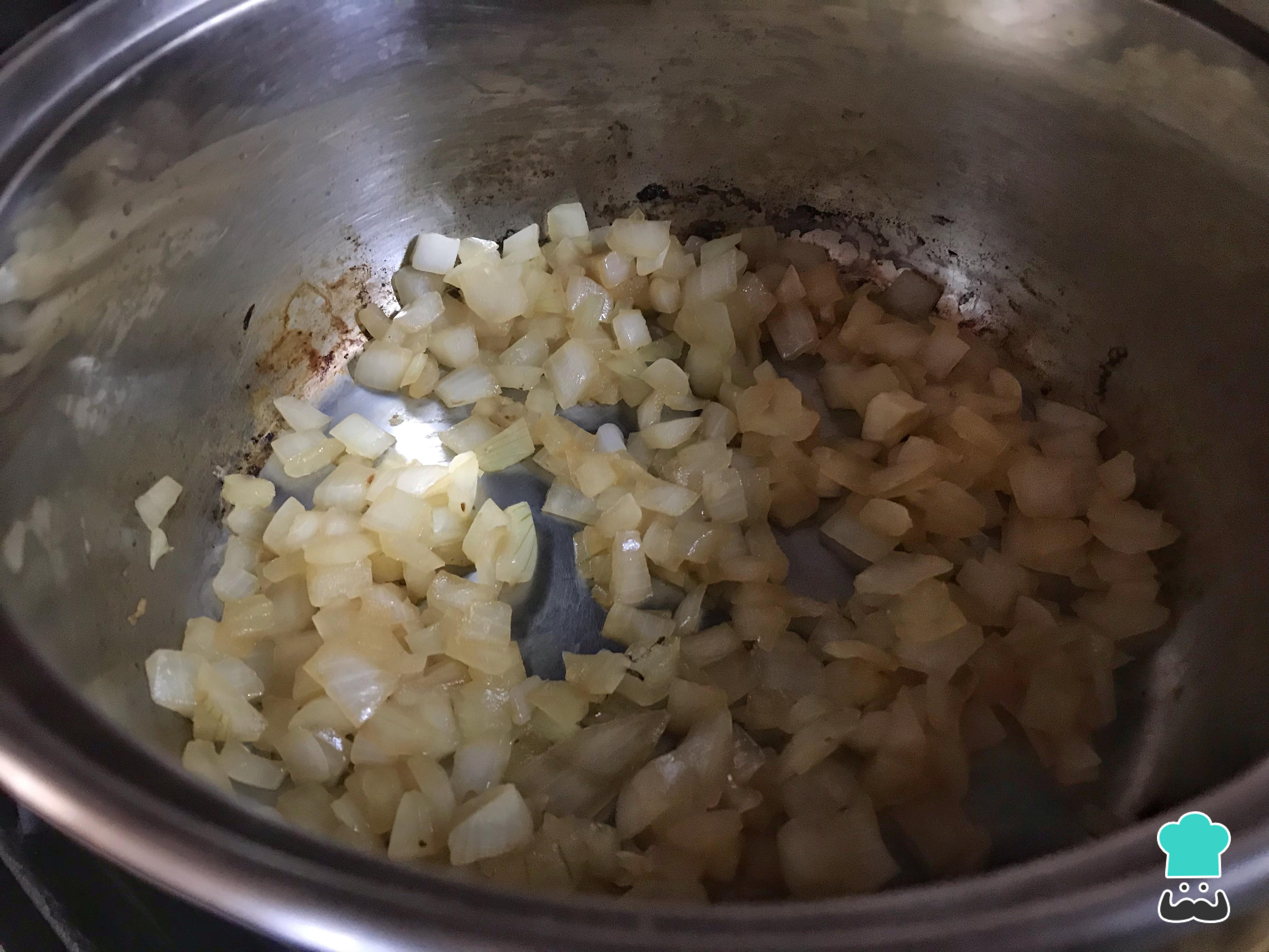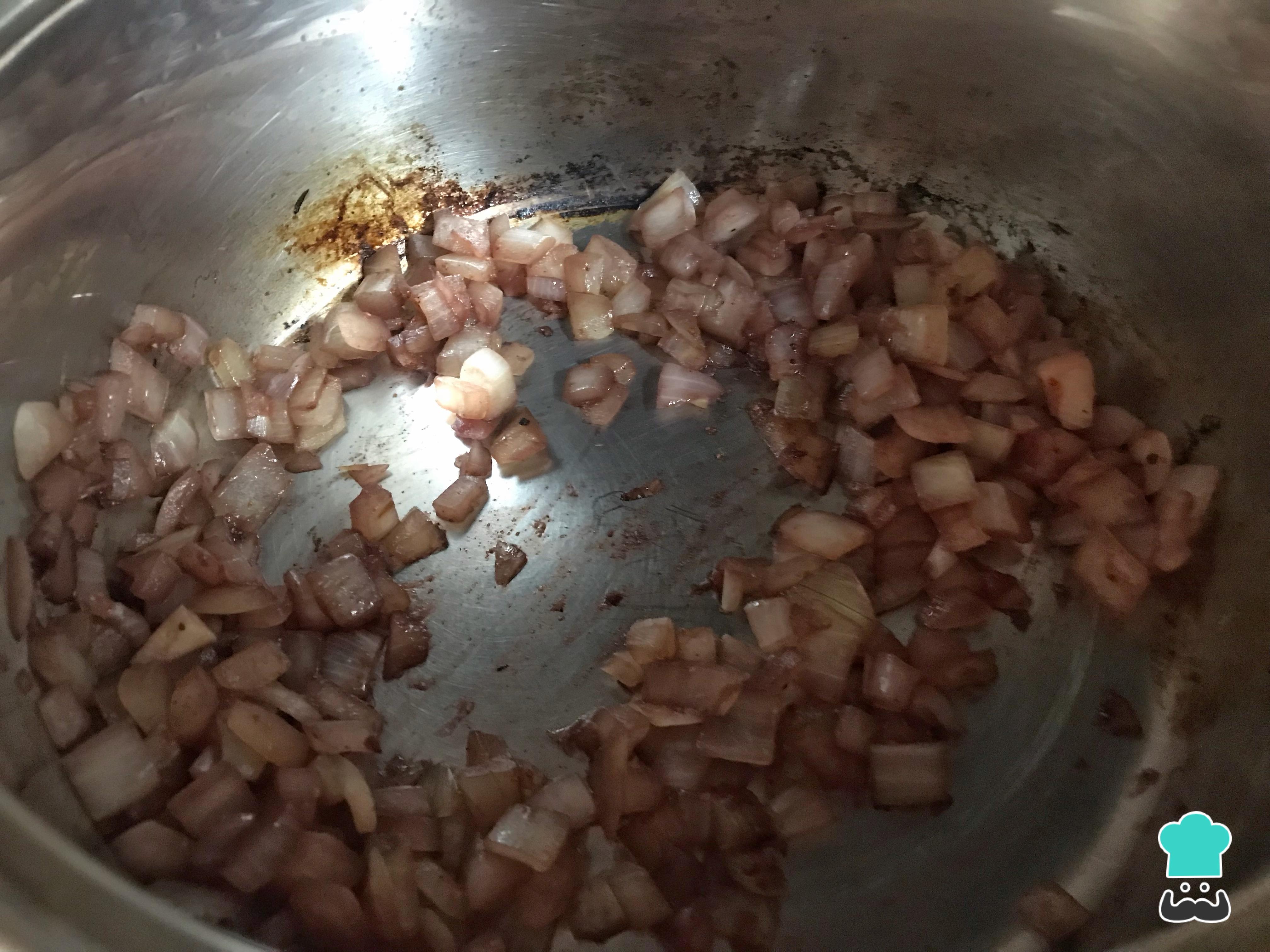 Una vez que veas el fondo de la olla de un color más dorado, baja el fuego a medio y agrega 1 cucharada de agua caliente, esto levantará el fondo de cocción y evitará que la cebolla se queme. Cuando el agua se evapore, debes agregar 1 cucharada de agua caliente. Repite este proceso tantas veces como quieras, debes saber que cuantas más veces lo hagas, más caramelizada quedará la cebolla.