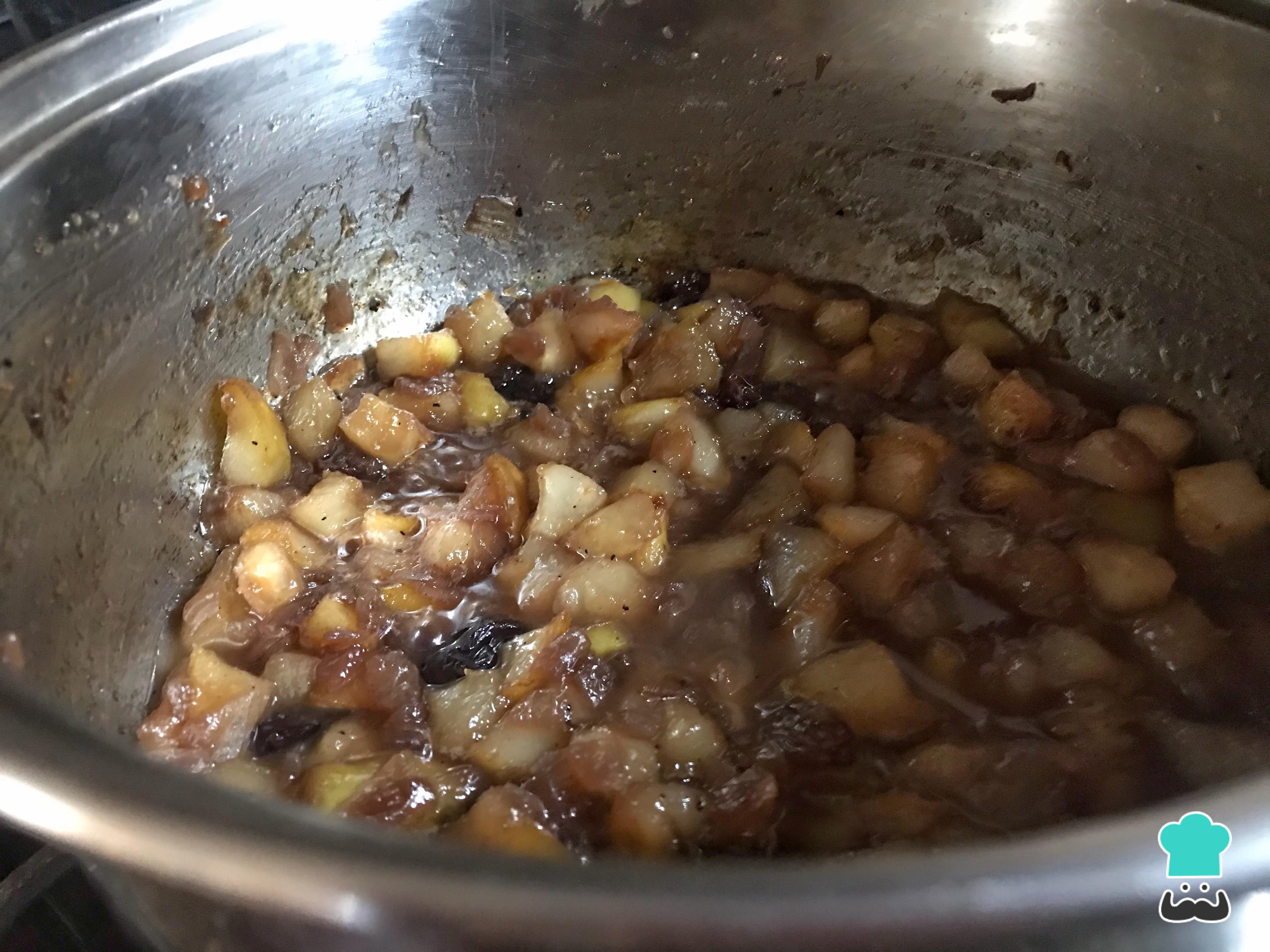 Cocina tu chutney de pera aproximadamente unos 30-40 minutos removiendo cada 10 minutos para que no se pegue en el fondo ni en las paredes. ¡Ya casi está la receta fácil de chutney de pera!