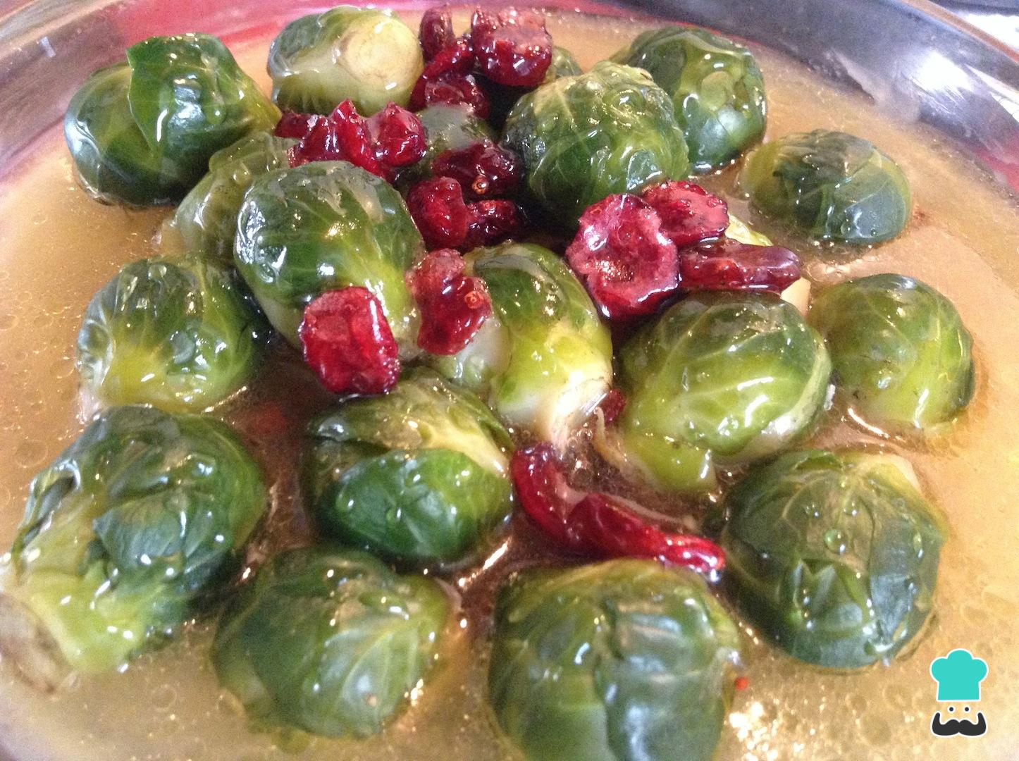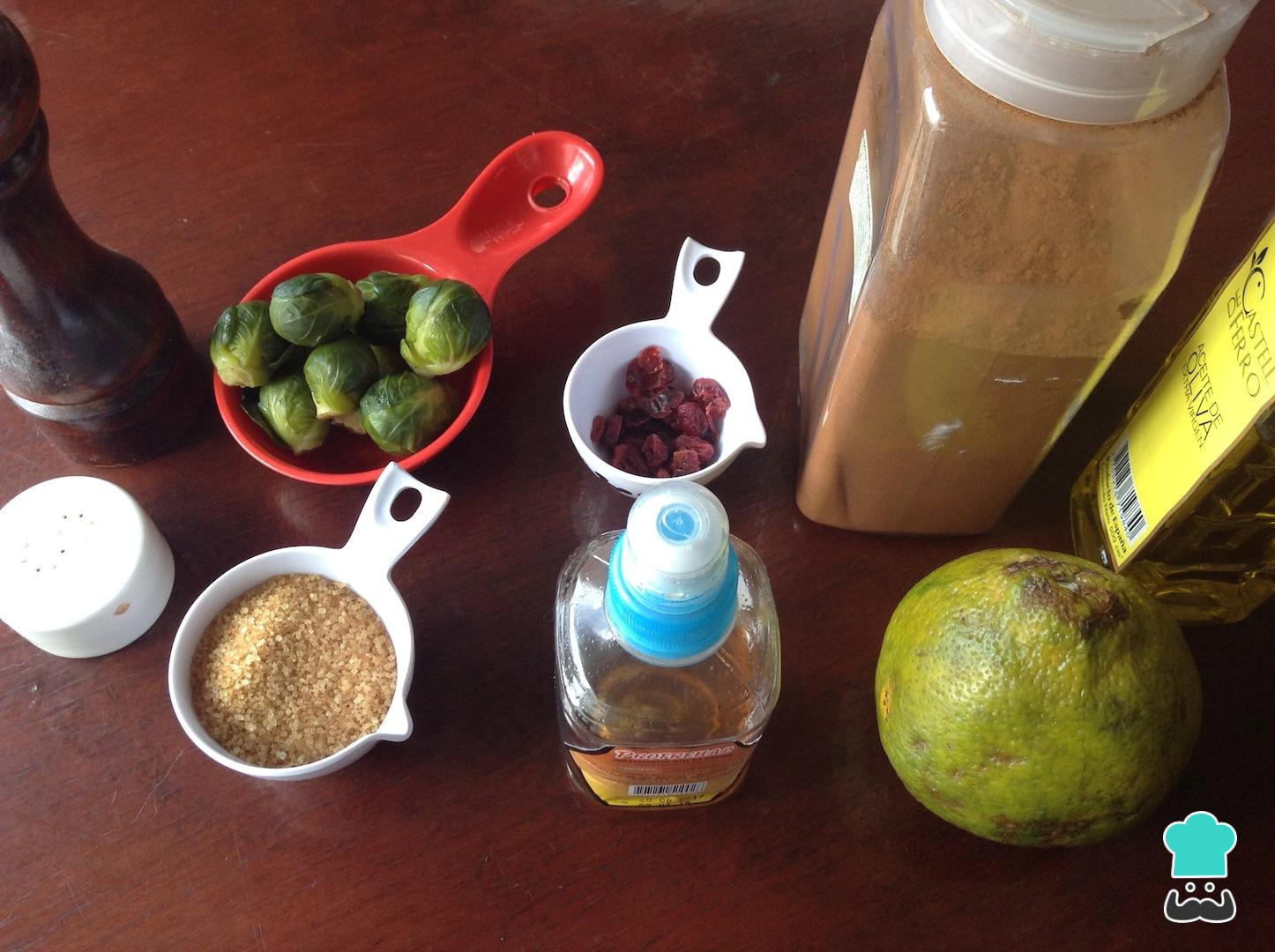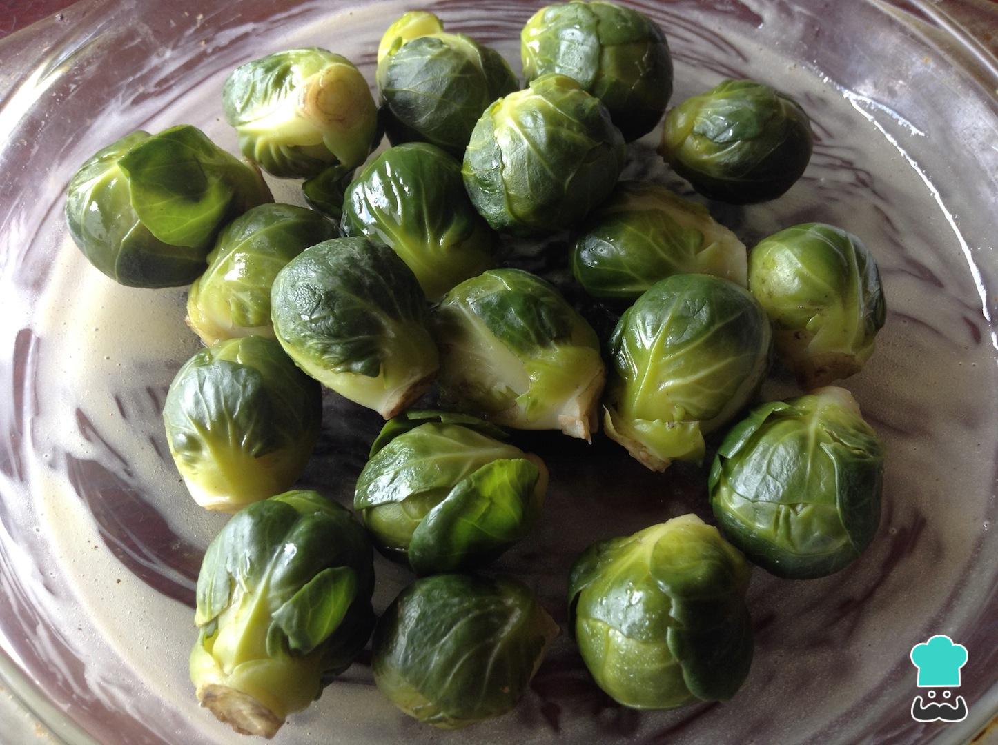 Antes de empezar a elaborar la receta debes alistar los ingredientes. Las coles de Bruselaslas hemos cocido en agua hirviendo previamente.