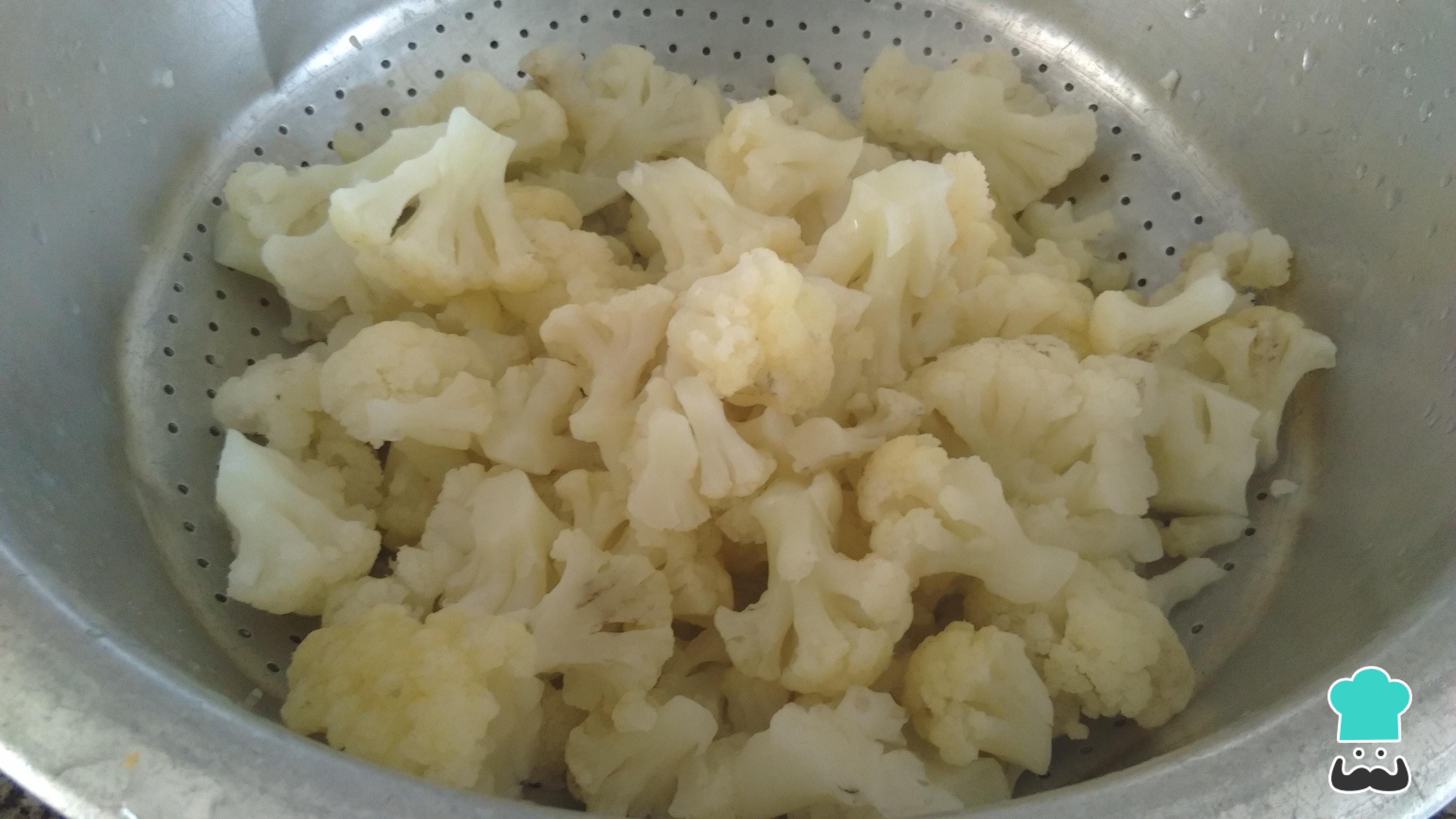 Cuando la coliflor esté lista, cuélala y reserva.