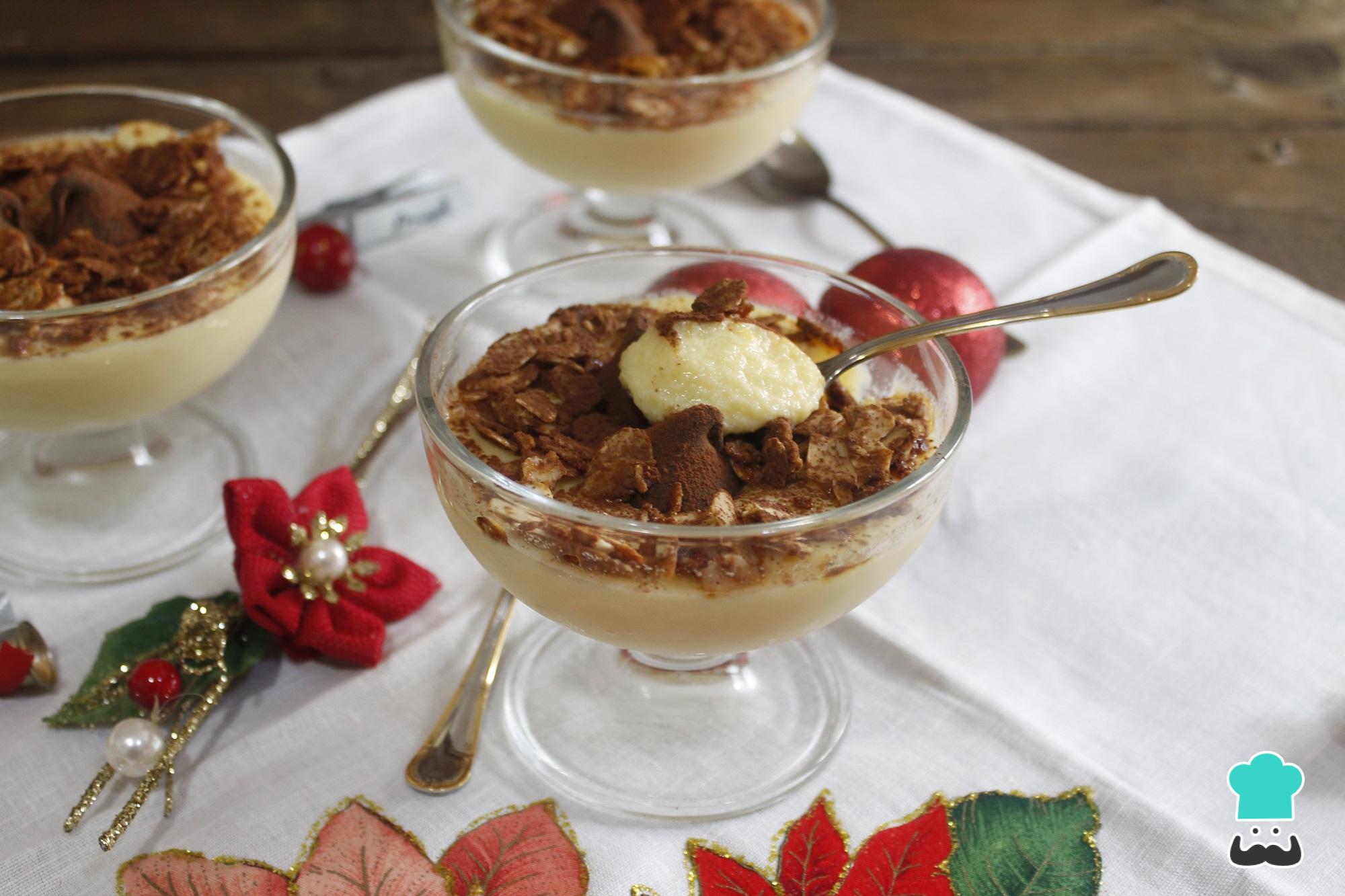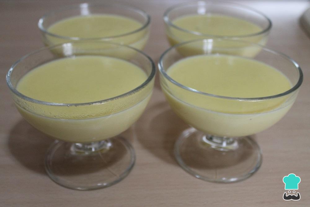 Retiramos la crema del fuego y vertemos en seis copas para postres. Dejamos enfriar y las reservamos en la nevera hasta que enfríen del todo.