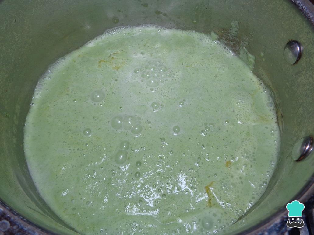 Cuando tengas una textura líquida, el siguiente paso llevar a reducción la crema de verduras. Para esto la colocamos en una cacerola con un poco de aceite caliente y dejamos que se sofría y se espese, movemos constantemente para evitar que se nos queme.