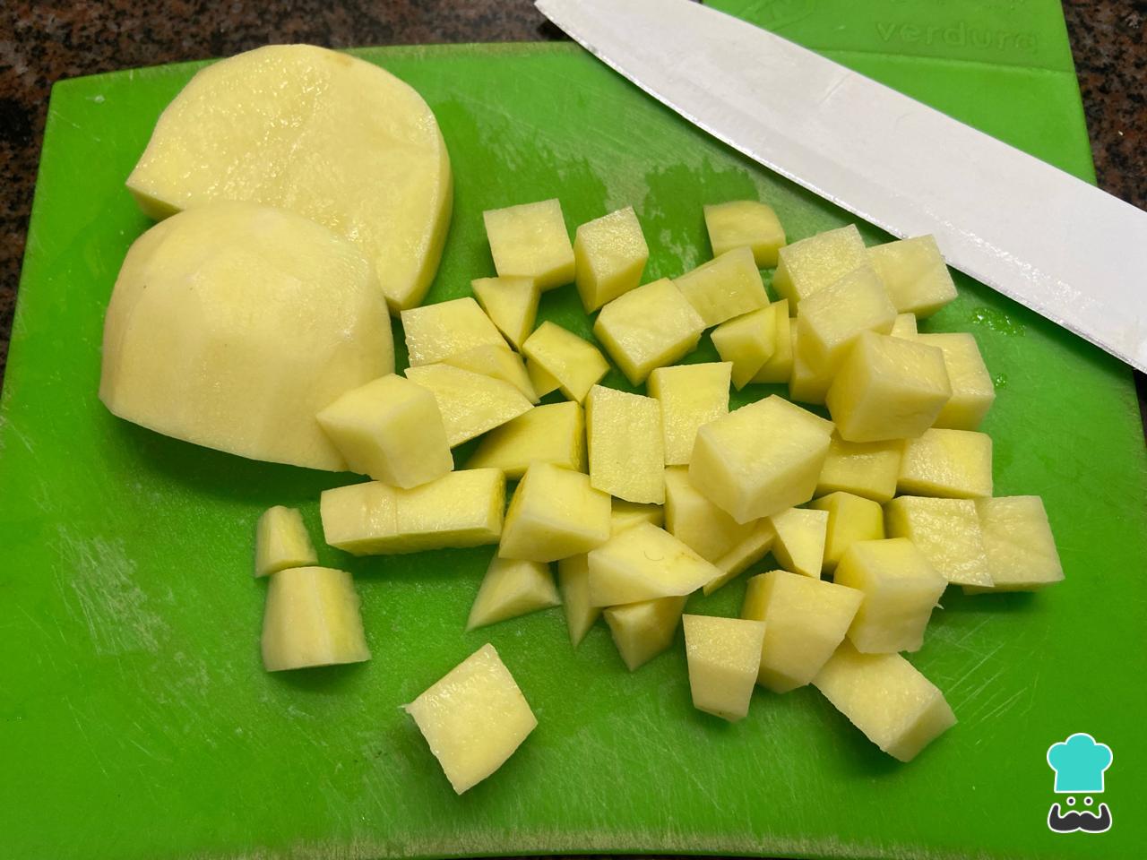Es momento de lavar y pelar la patata y cortarla en cubos.
