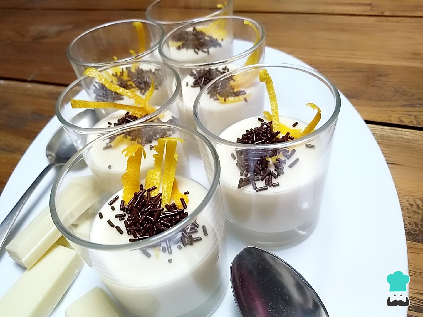 Inmediatamente, distribuye la mezcla en vasos individuales antes de que se enfríe. Puedes decorar el cremoso de chocolate blanco casero con virutas de chocolate, ralladura de naranja, nata montada...., ¡las posibilidades son infinitas! No dejes de preparar este rico dulce de chocolate blanco y muestra tu creatividad compartiendo una foto del resultado en los comentarios.