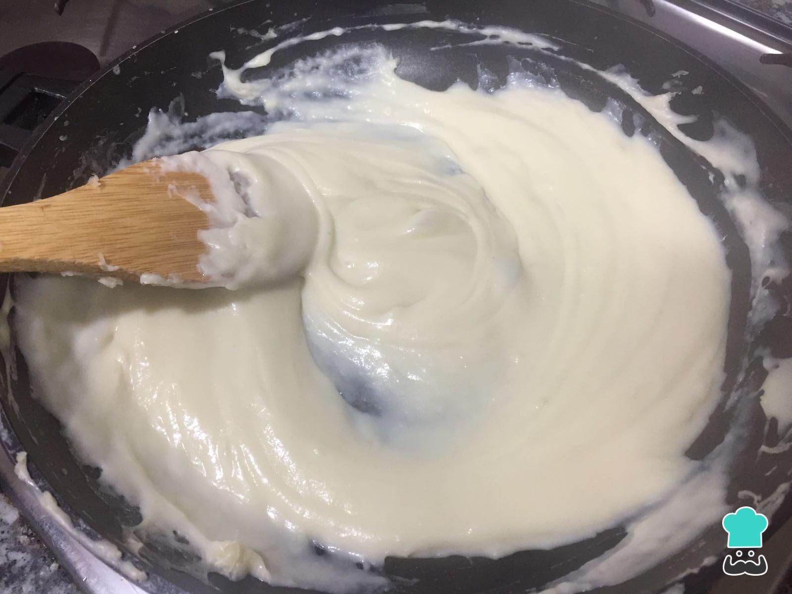 Añade lentamente la leche sin dejar de remover y deshacer los grumos. Añade la sal mientras remueves cuando aún esté algo líquida la mezcla, no esperes al final cuando esté compacta.