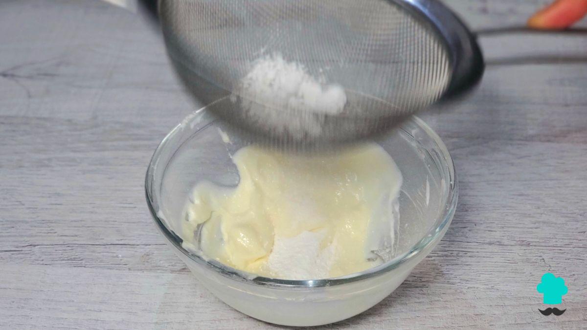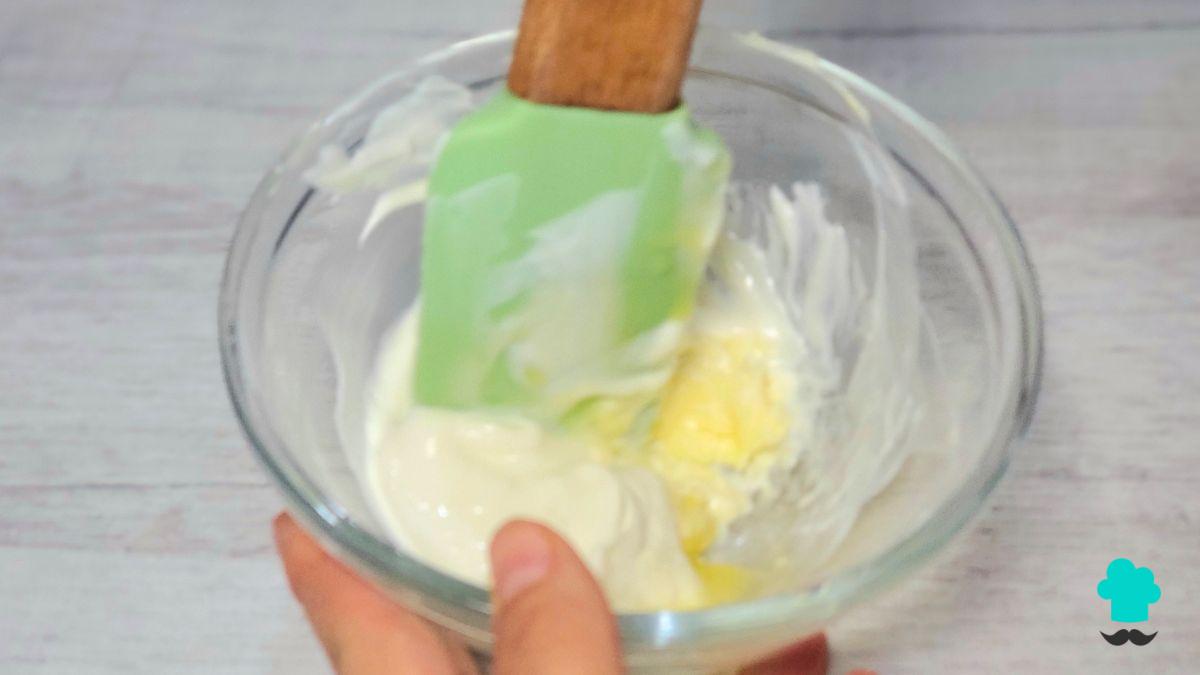 Incorpora azúcar en polvo y un chorrito de esencia de vainilla, batiendo hasta obtener una crema lisa y brillante.