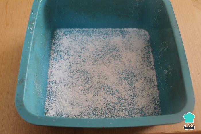 Para empezar con la receta tradicional de las delicias turcas, primero prepara el molde para dejarlas enfriar. Te recomendamos utilizar un molde de silicona cuadrado, no más grande de 15x15 cm. Si no tienes molde de silicona, engrasa el molde bien con un spray desmoldante y forra con papel de horno. También espolvorea por encima una cucharadita de almidón de maíz (maicena) y reserva.