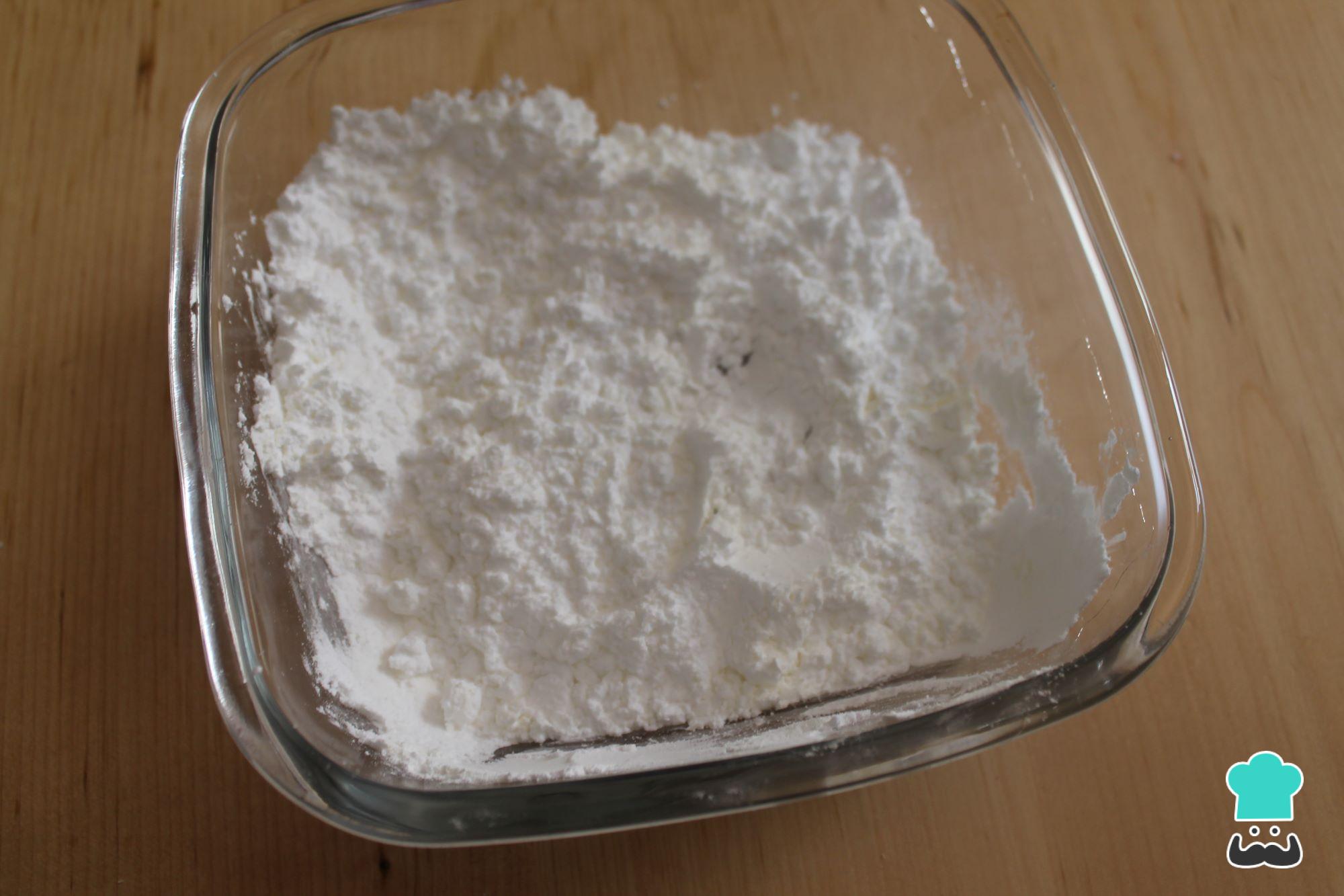 Mezcla en un bol las 4 cucharadas de azúcar glass con las 2 cucharadas de fécula de maíz (maicena).