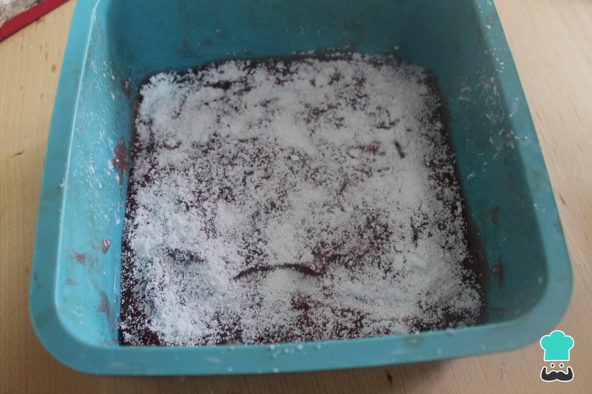 Espolvorea por encima con ayuda de un colador para que quede más fino, reserva el resto. Deja que las delicias turcas se enfríen y cuajen durante 24 horas en un lugar seco, sin humedad (no reserves en la nevera).